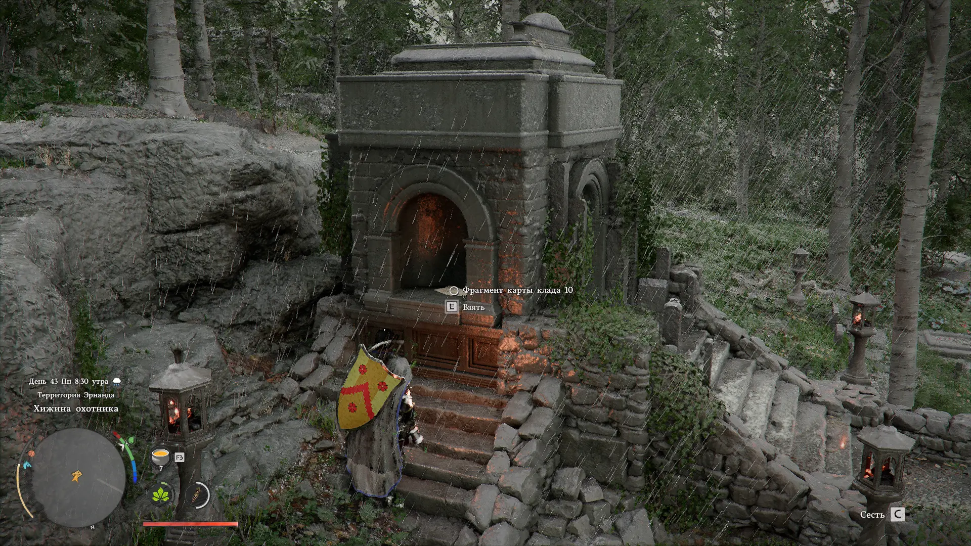 Отправляйтесь к Древним руинам, местоположение которых указано на карте выше. Когда доберетесь до них, идите к усыпальнице, к которой ведет каменная лестница. Фрагмент карты располагается с левой стороны данного склепа — в небольшом арочном углублении.