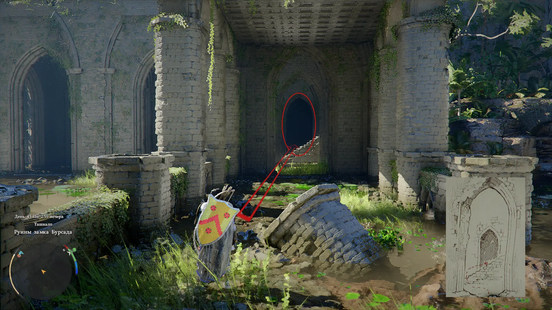 Десятый фрагмент карты клада в Crimson Desert приводит игроков к Руинам замка Бурсад, в которых спрятан сундук с Латными доспехами алчности. Что касается самого фрагмента карты, то он располагается на кладбище недалеко от города Эрнанд.