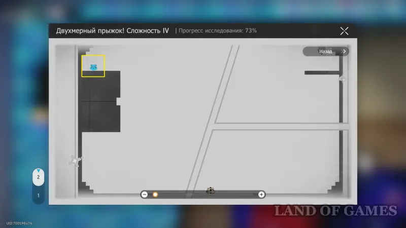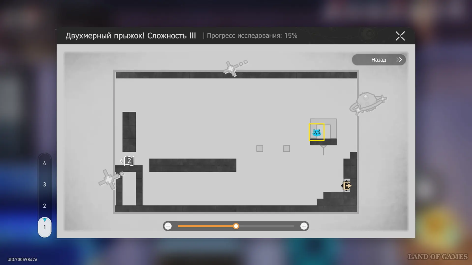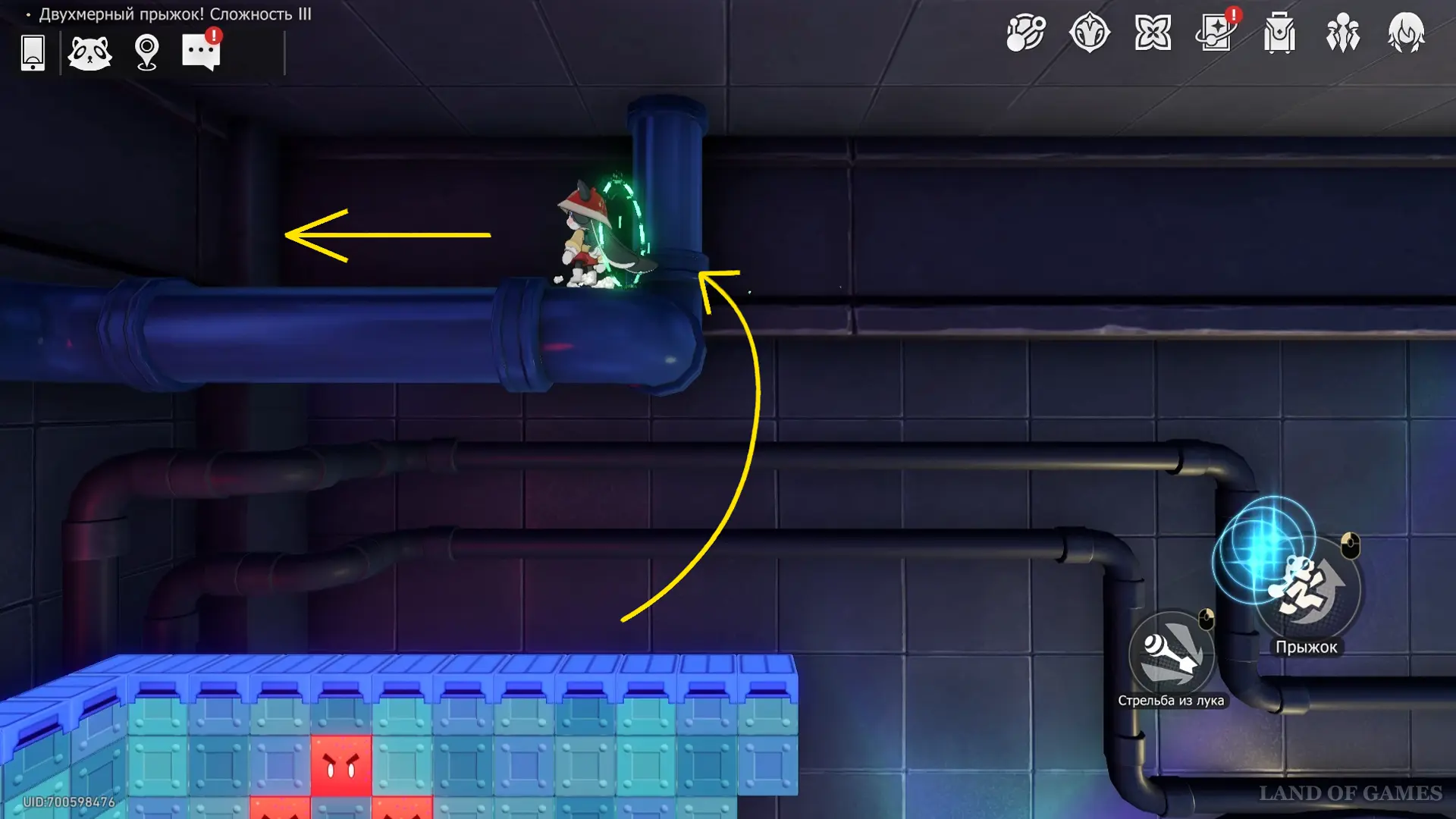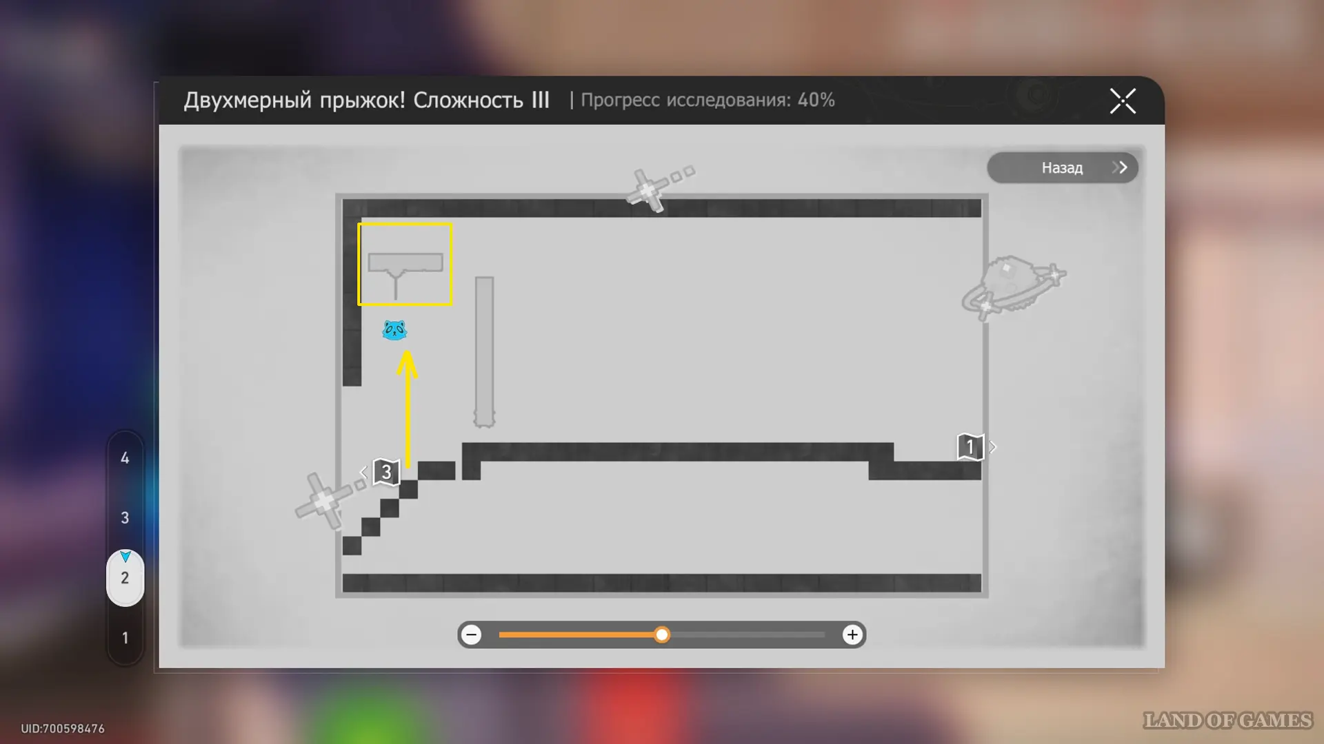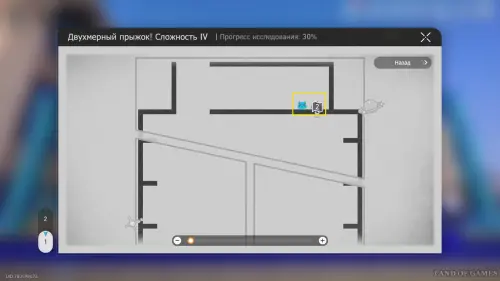 Теперь разберем процесс исследования Двухмерного прыжка 3-й сложности, стоящего перед сценой в зале Сяньчжоу.