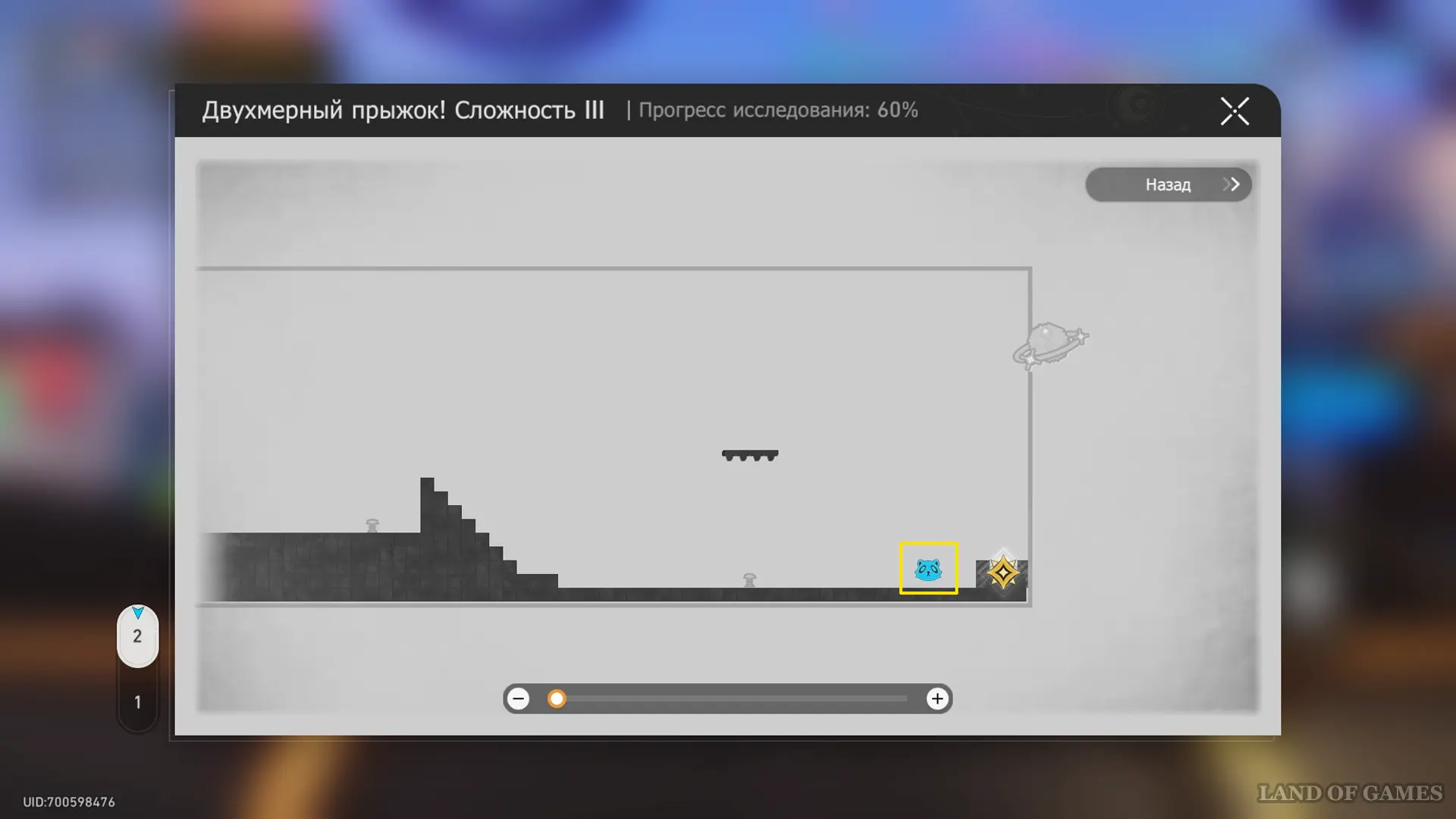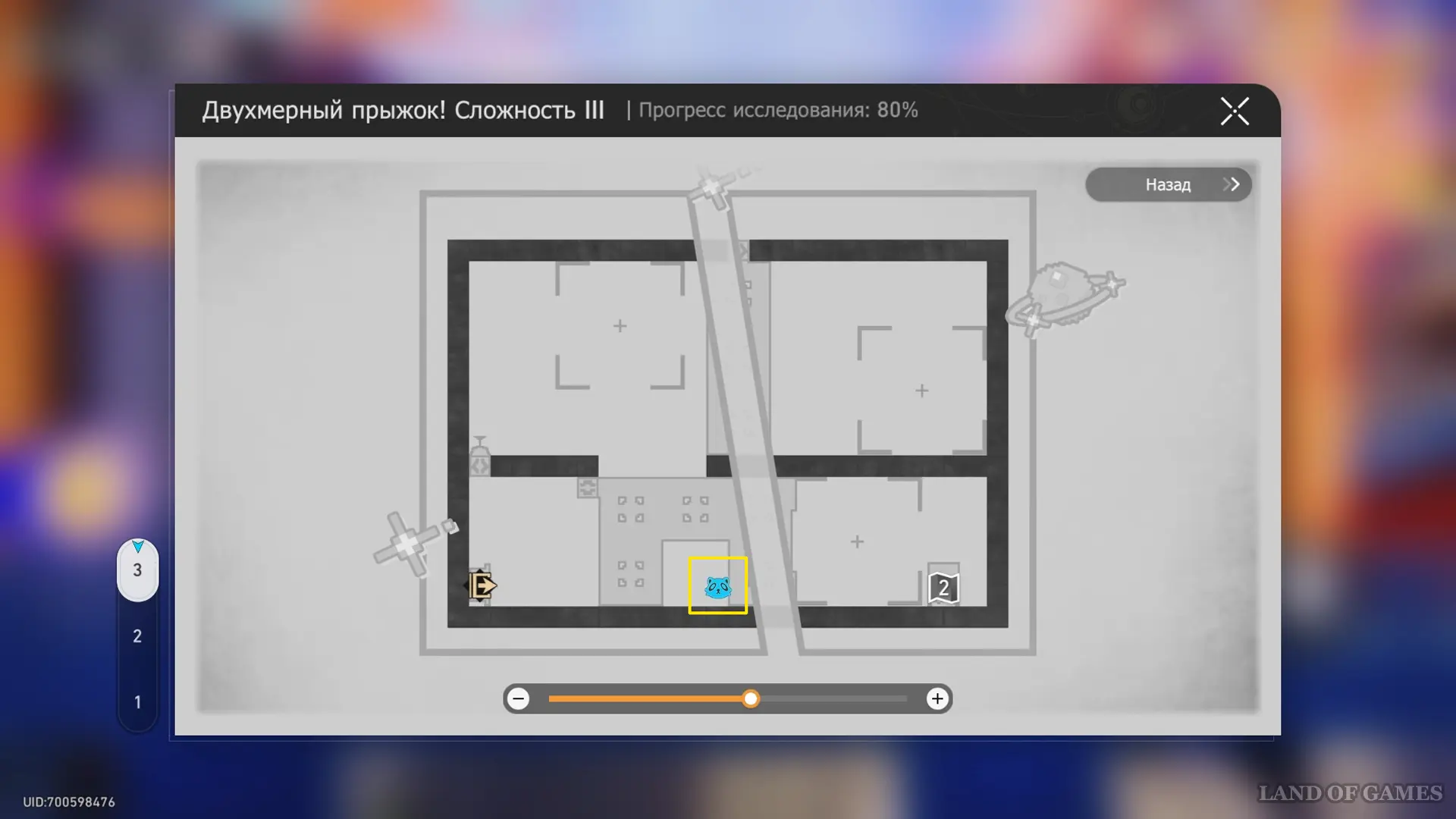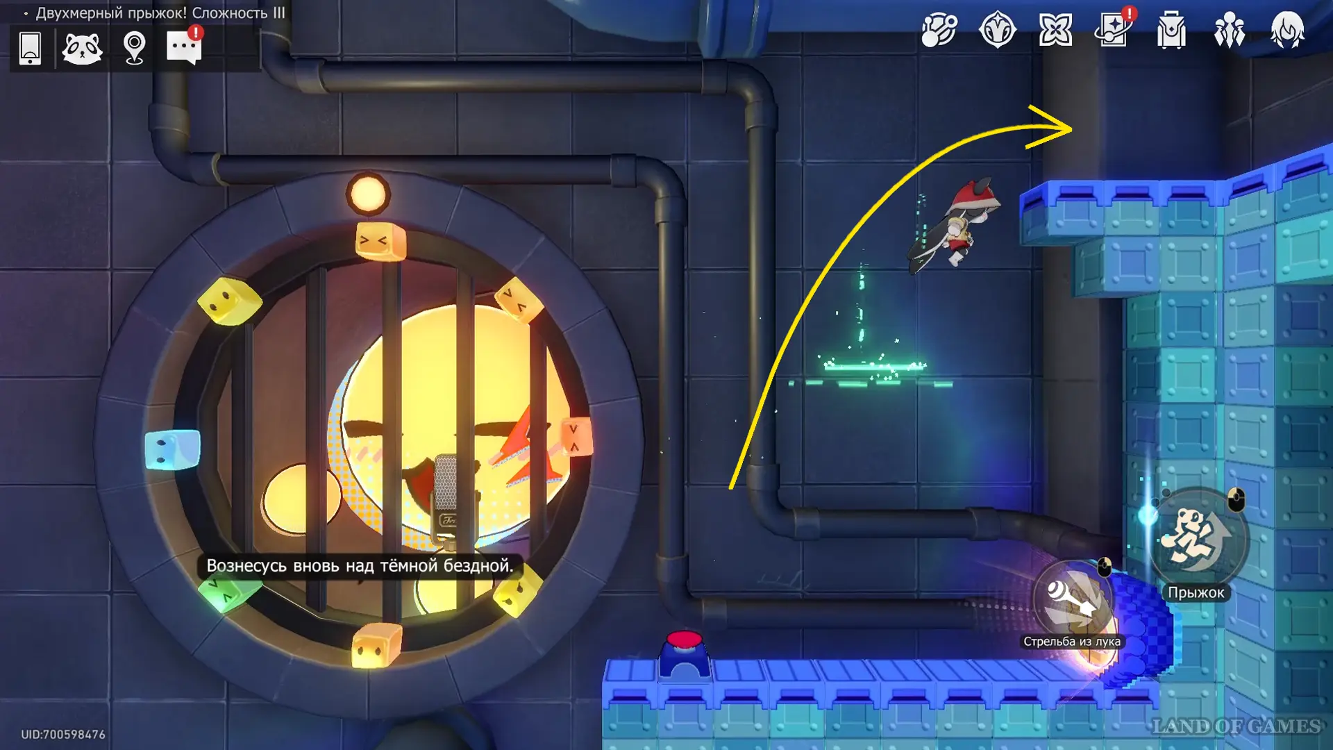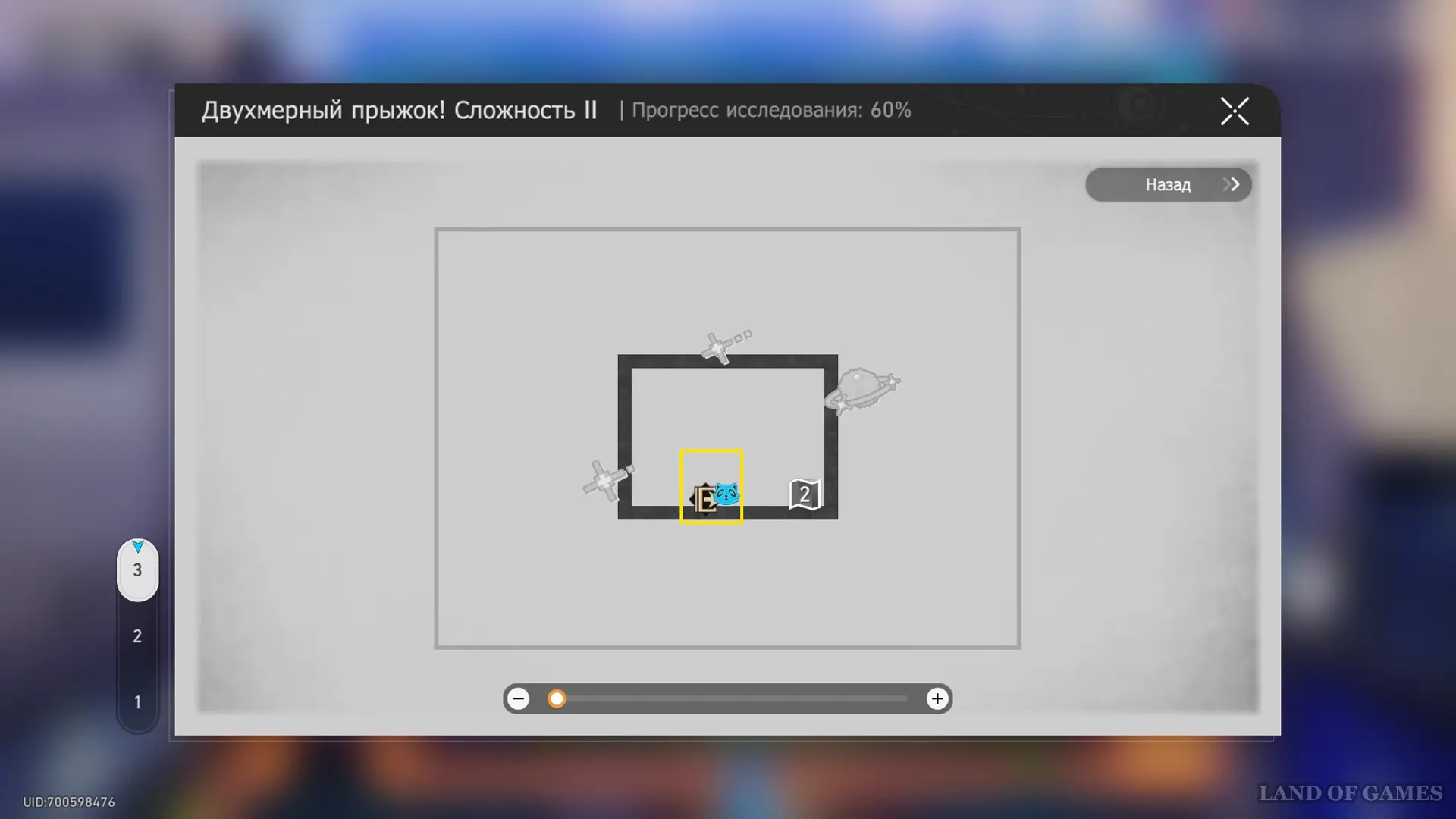 Теперь разберем процесс исследования Двухмерного прыжка 3-й сложности, стоящего перед сценой в зале Сяньчжоу.