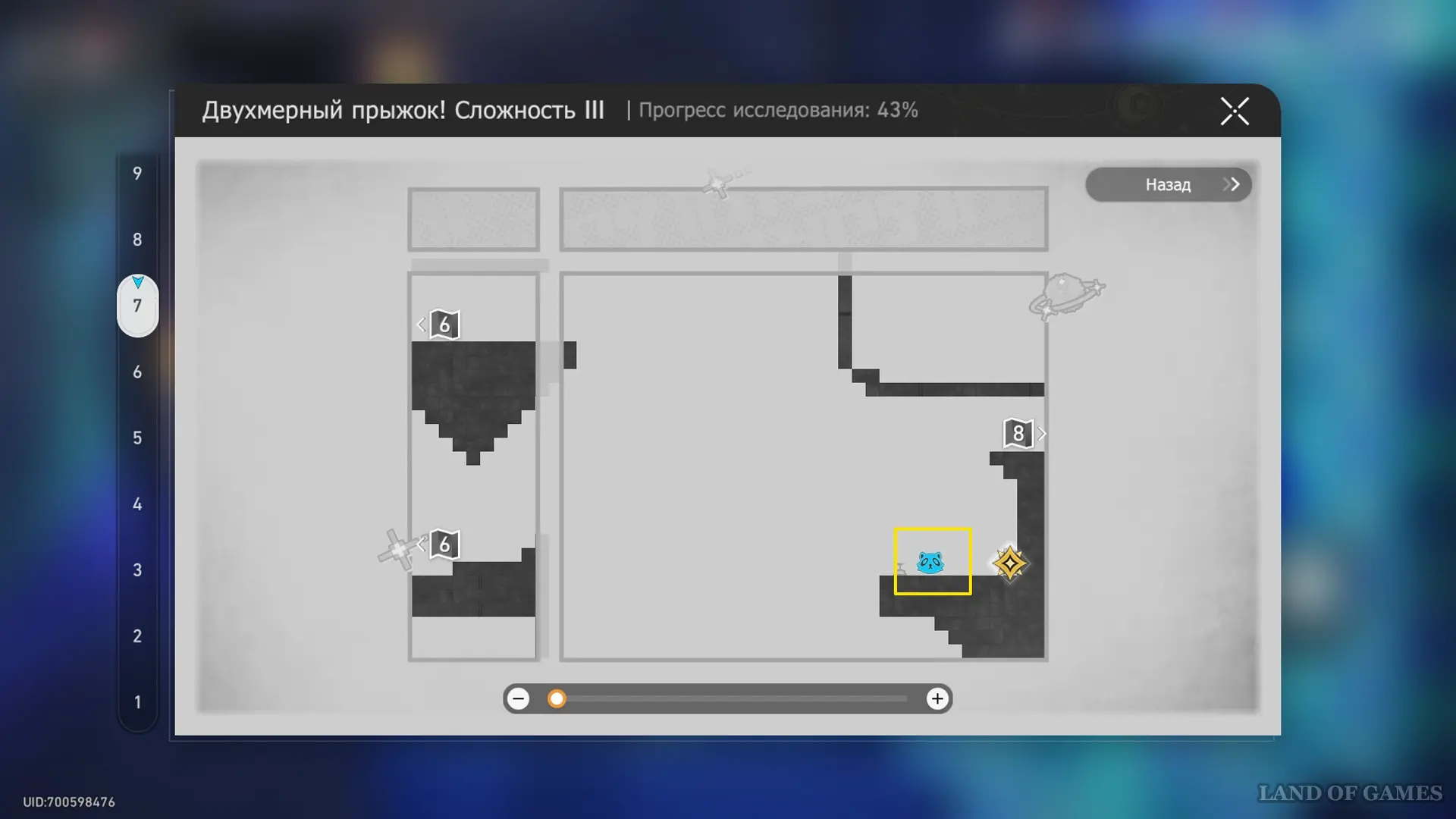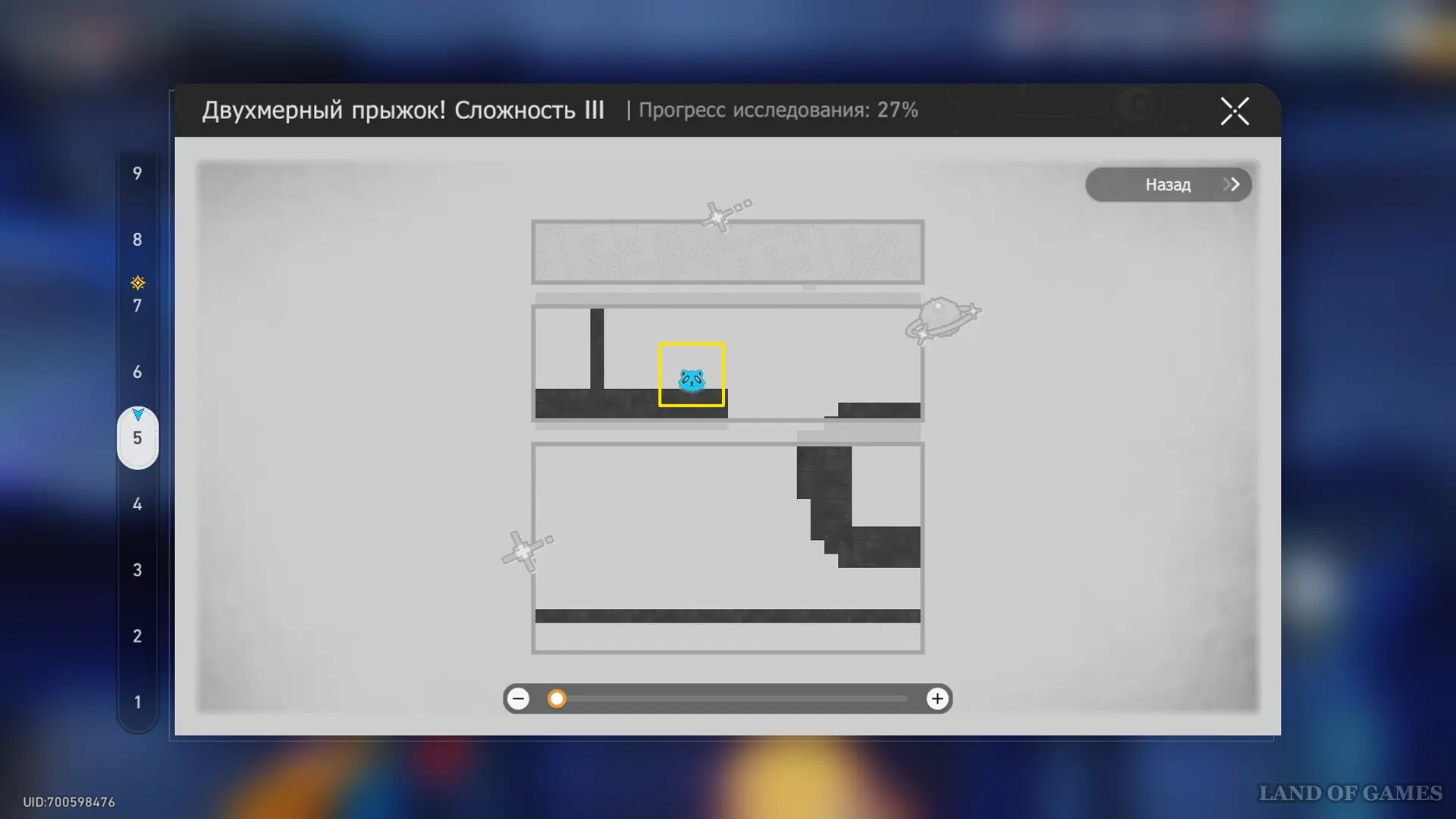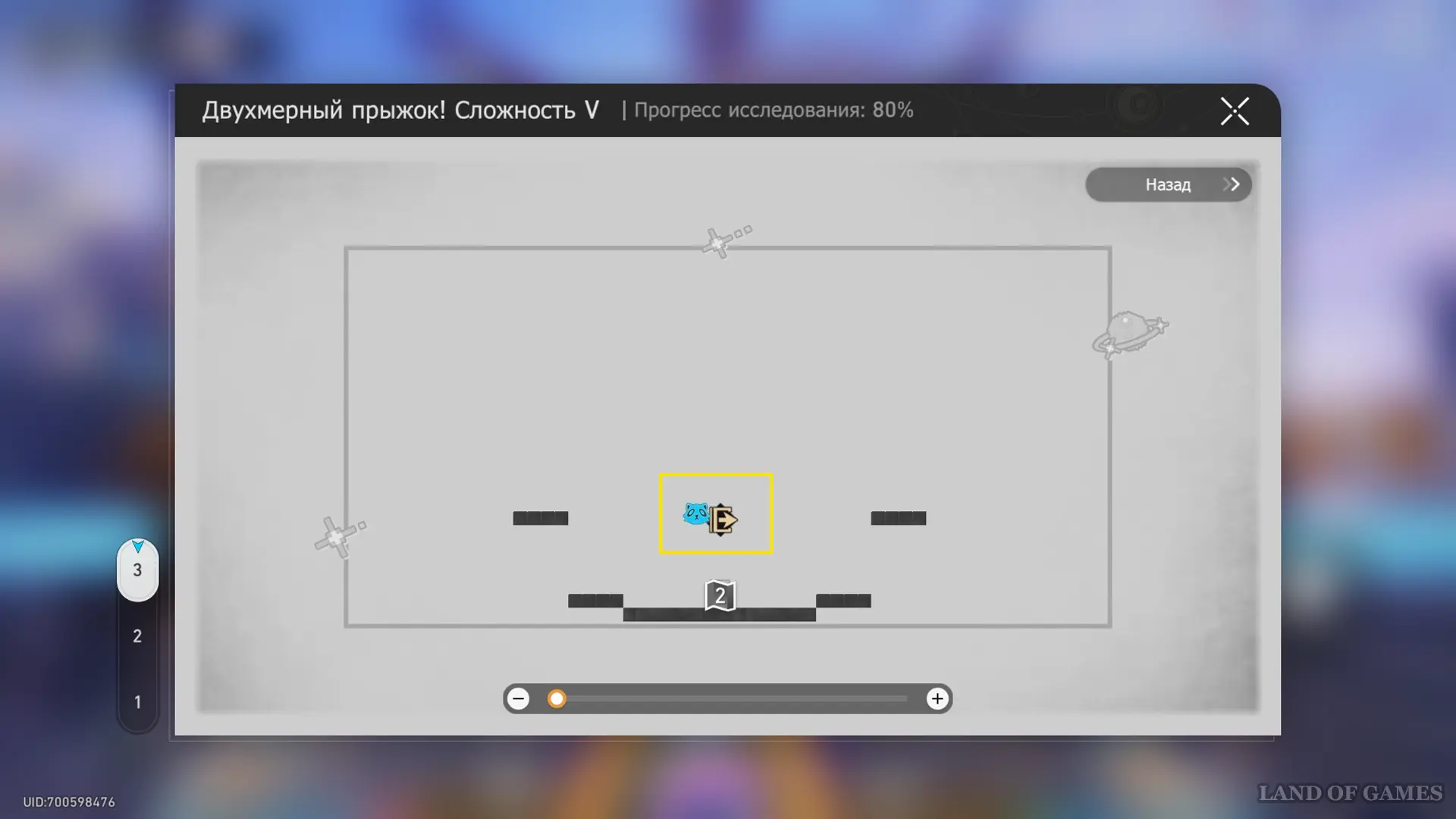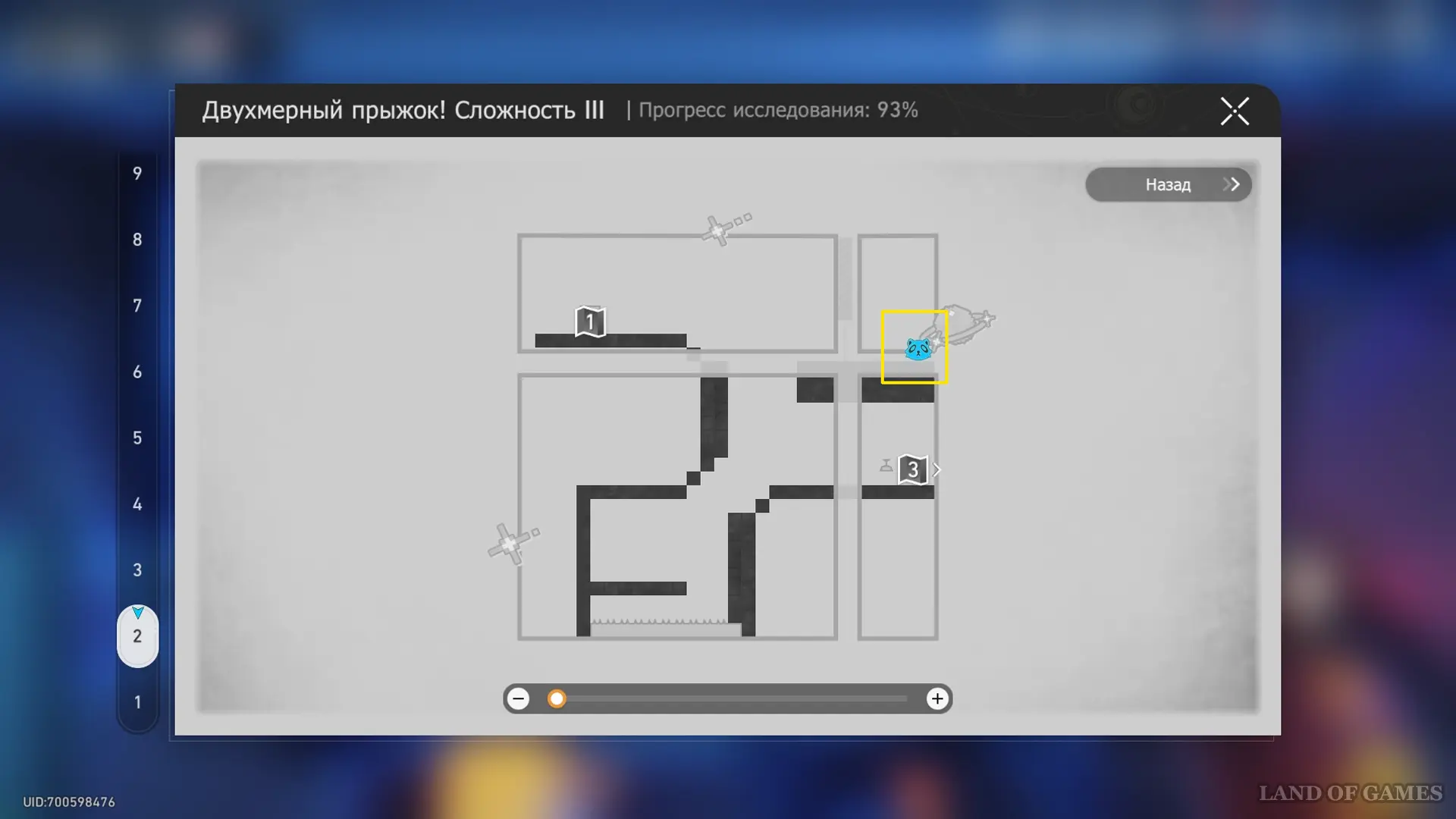 Теперь разберем процесс исследования Двухмерного прыжка 3-й сложности, стоящего перед сценой в зале Сяньчжоу.