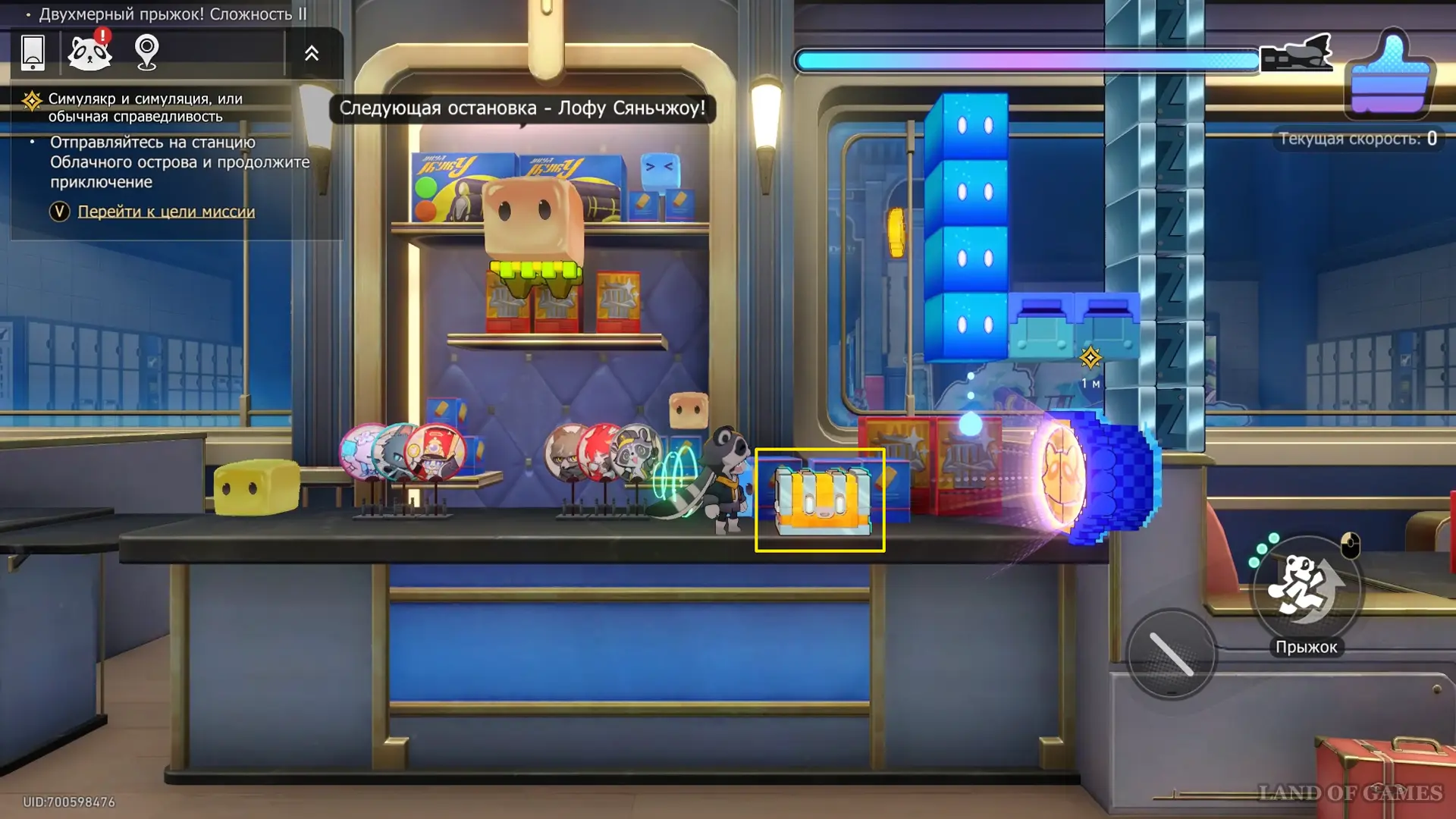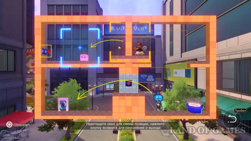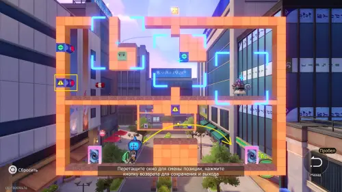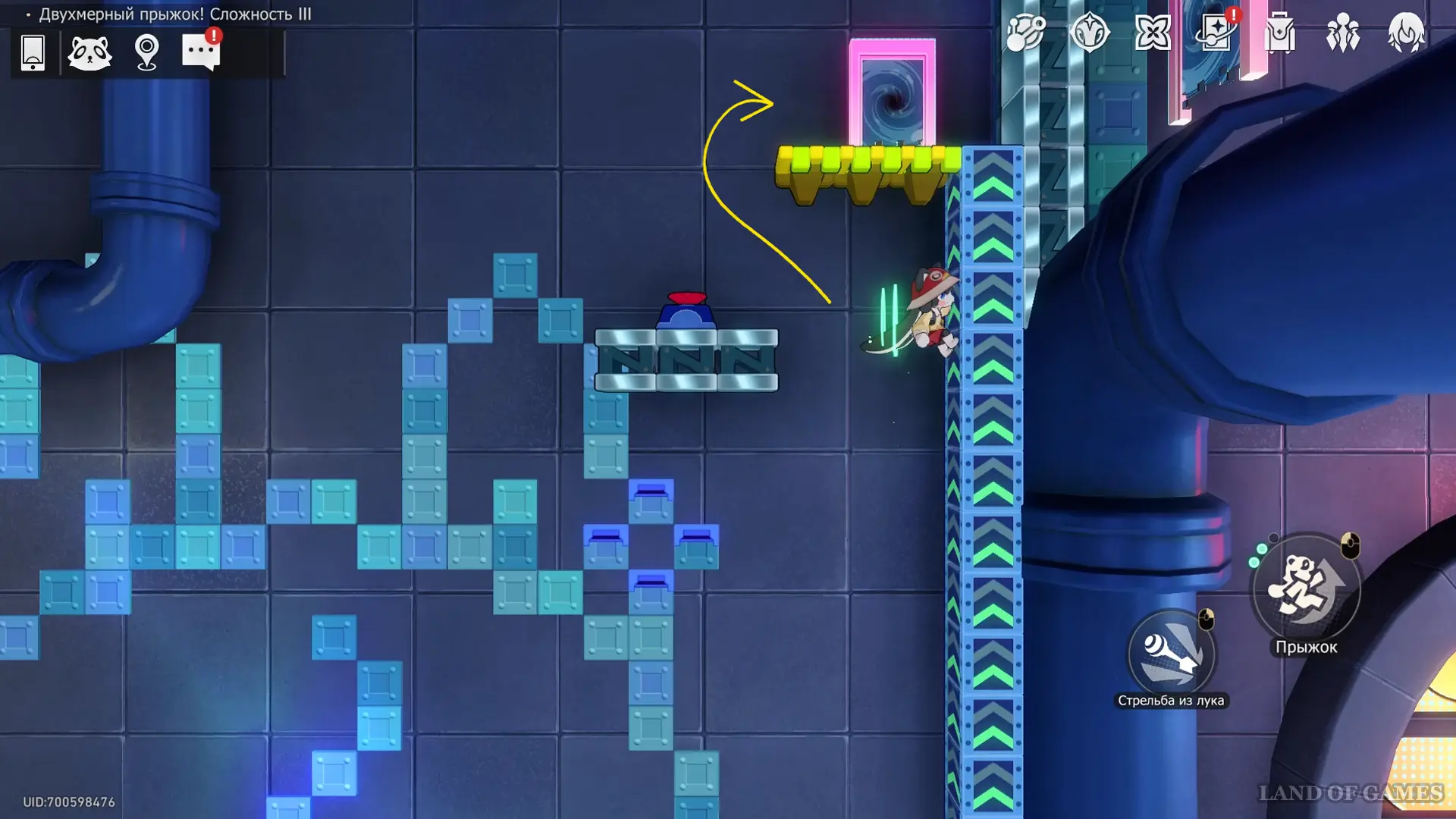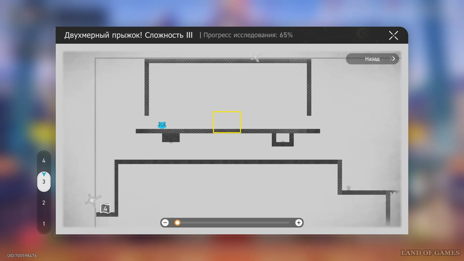 Во 2-й зоне сначала переместите ячейку с мобом влево и дождитесь активации зеленой кнопки. Затем верните Пом-помощника на правую ячейку, блок с зеленым эфемером — на место предыдущего. Как только ракета ударит по желтой кнопке, вы сможете пройти к следующему порталу.