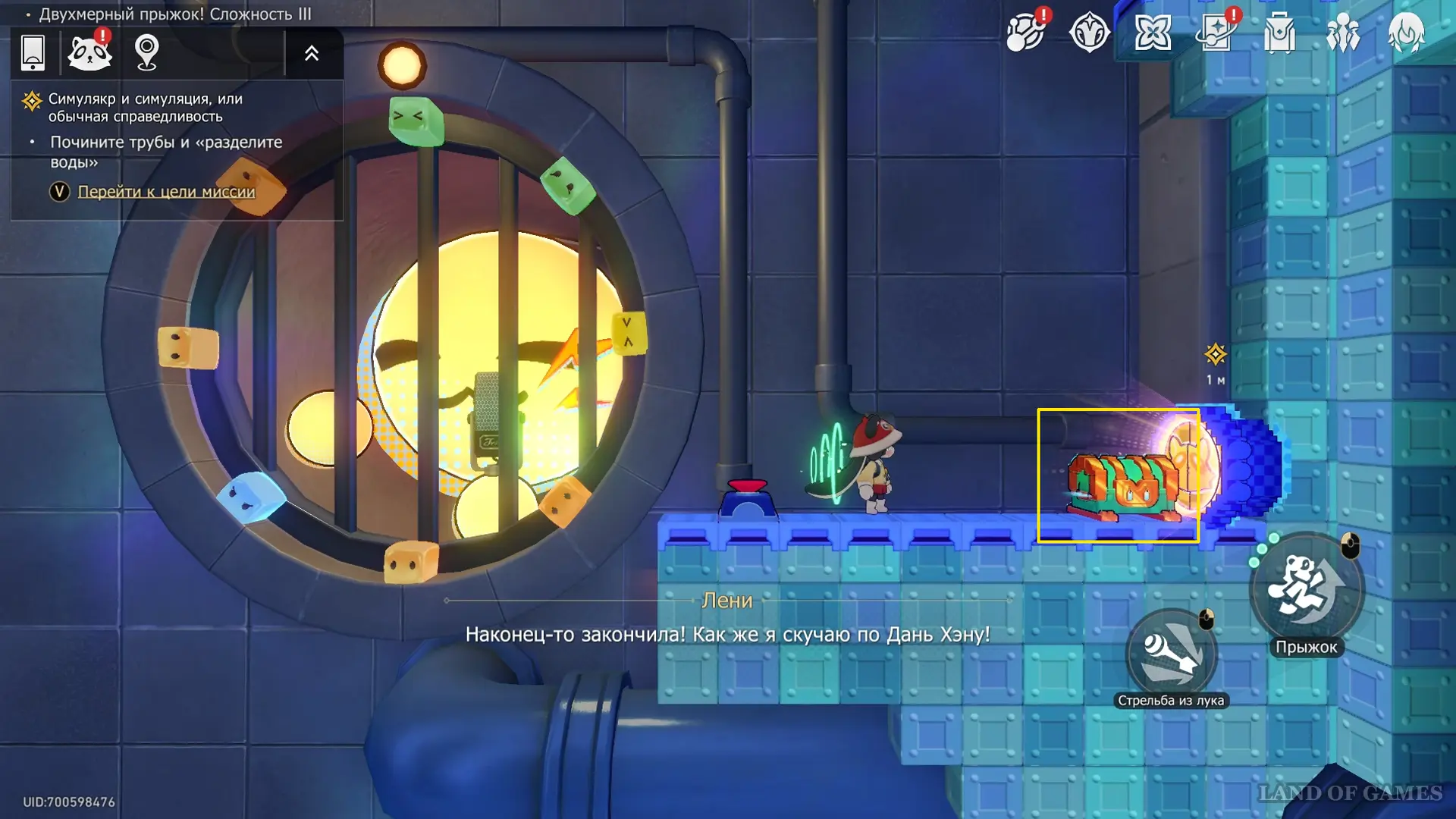 Двигайтесь вправо, уклоняйтесь от ракет механических Пом-помощниц и поднимайтесь к порталу, что в верхнем правом углу 2-й карты — он переместит вас к трубе-выходу, над которой будет стоять желтый ларец.