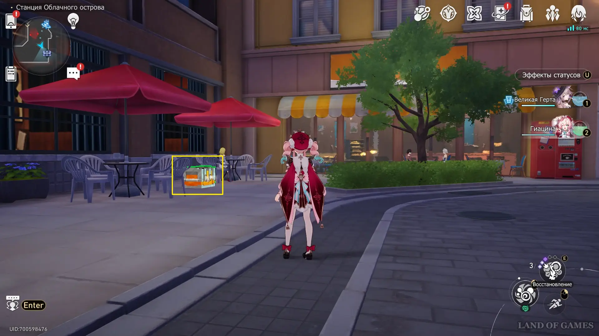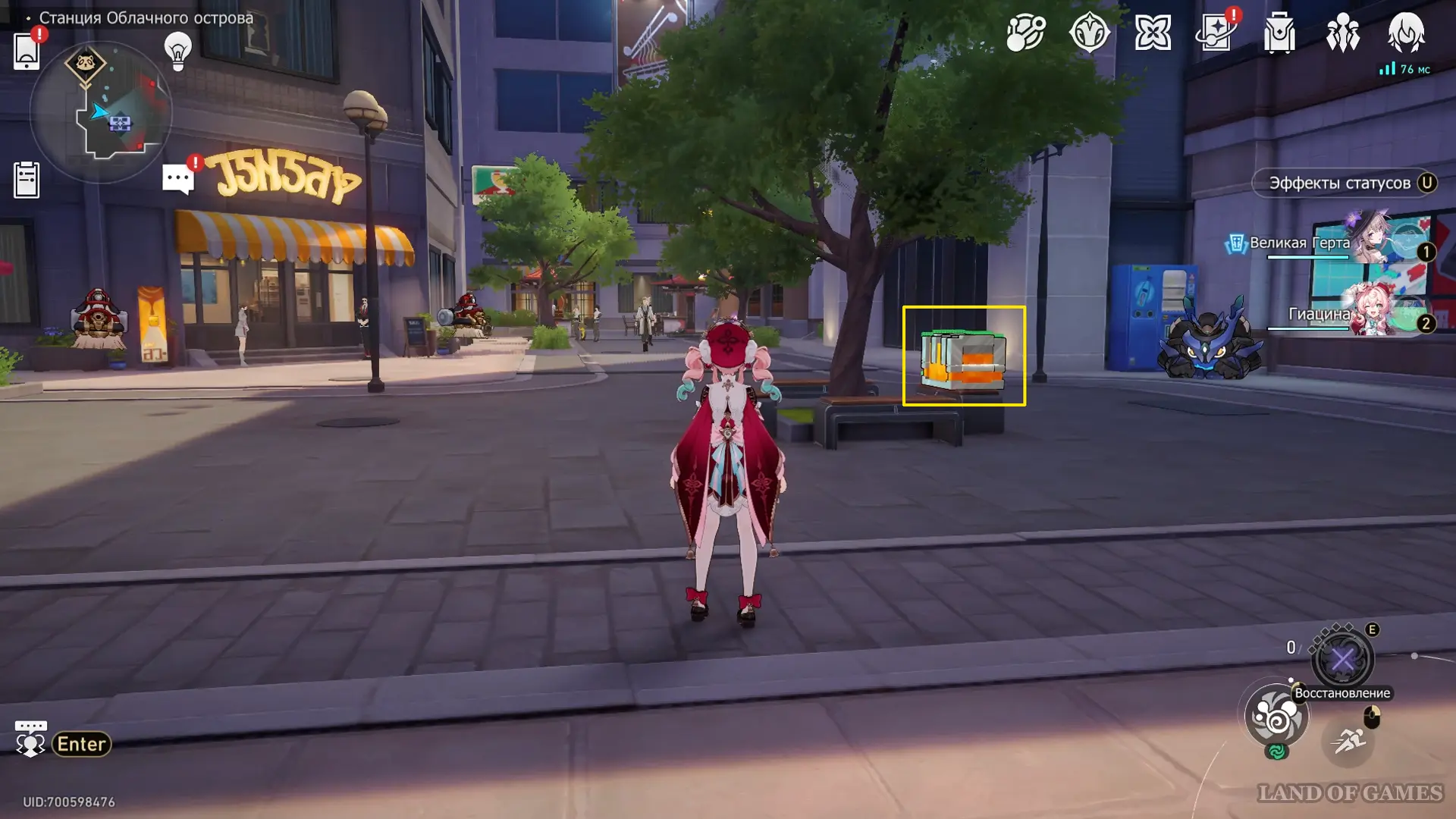 Пройдите через переулок к востоку от проспекта, затем двигайтесь влево — 5-й сундук находится у края островка с кустами, напротив кофейни.