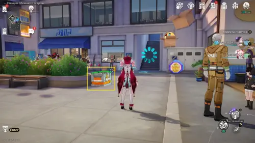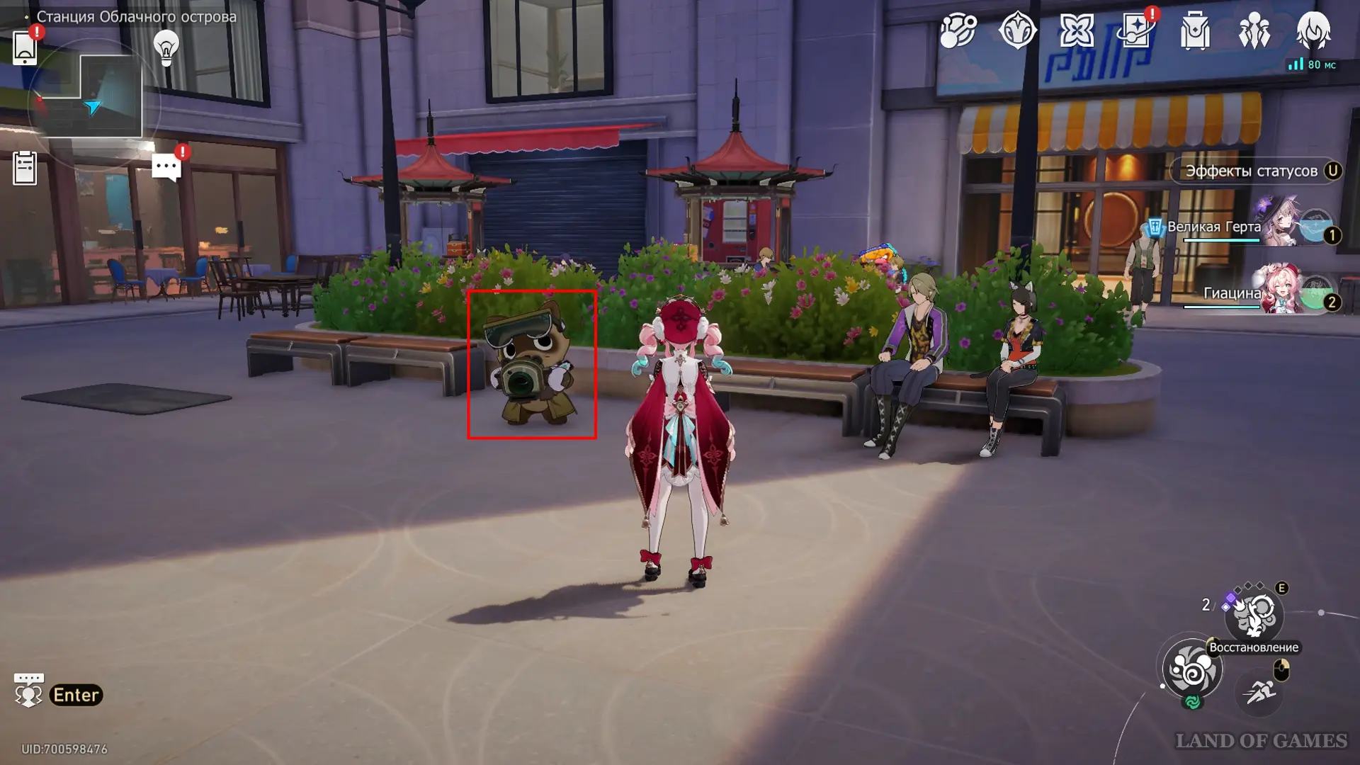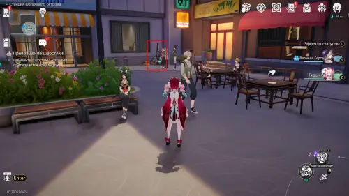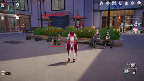 Опустошив прошлый тайник, идите вглубь улицы. Во дворе с рестораном в западном стиле найдите Шерстяку-папарации у клумбы в центре и поговорите с ним. Как только он исчезнет, направляйтесь в юго-восточный угол двора, ударьте макет Енота-биты и завершите прятки.
