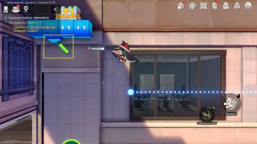 Перейдите в аналогичное место, но на южной половине балкона в зале Сяньчжоу — отсюда получится войти в Двухмерный прыжок 2-й сложности.