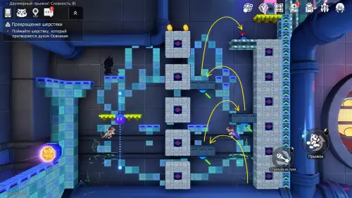 Запрыгиваем на выступ над выходом в 7-й зоне и бежим вправо — это путь к испытанию Шерстяного товара.