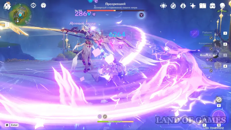 Что касается основных и второстепенных дамагеров, то крайне желательно, чтобы они относились к Пиро, Гидро, Крио или/и Электро стихии и при этом имели разный элемент. Дело в том, что Созерцатель: Падший страж дважды записывает получаемый им стихийный урон, а затем выпускает две Активные элементальные звезды соответствующих стихий, которые вам нужно как можно быстрее уничтожить, иначе босс проведет мощную атаку Делирий феномена.