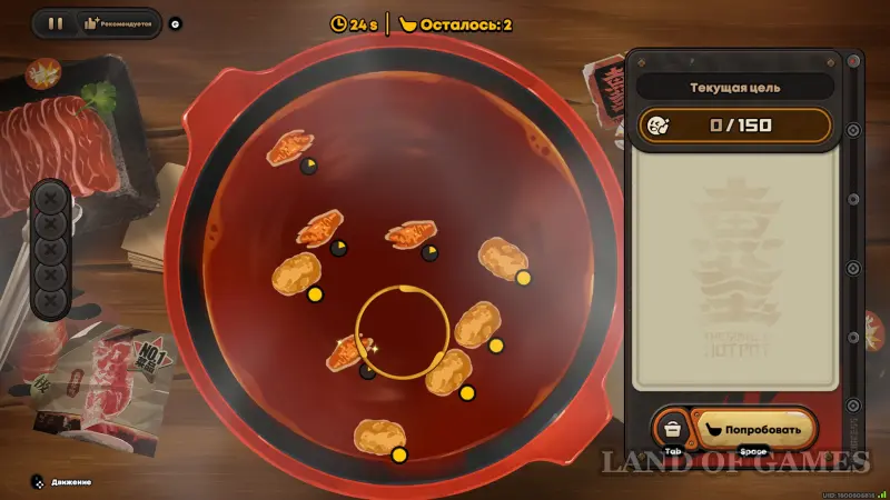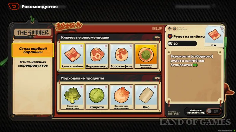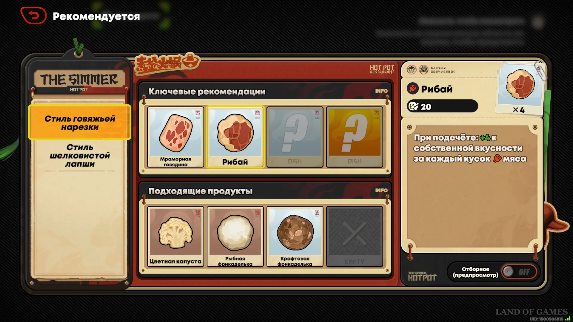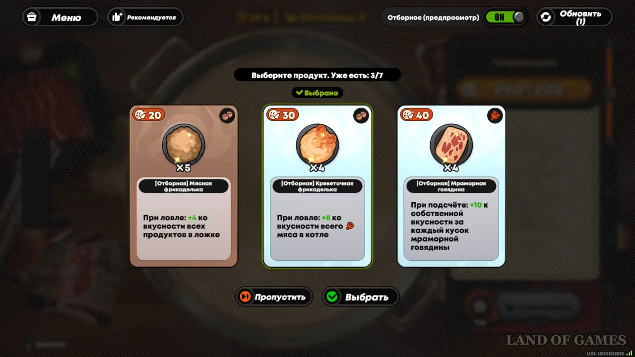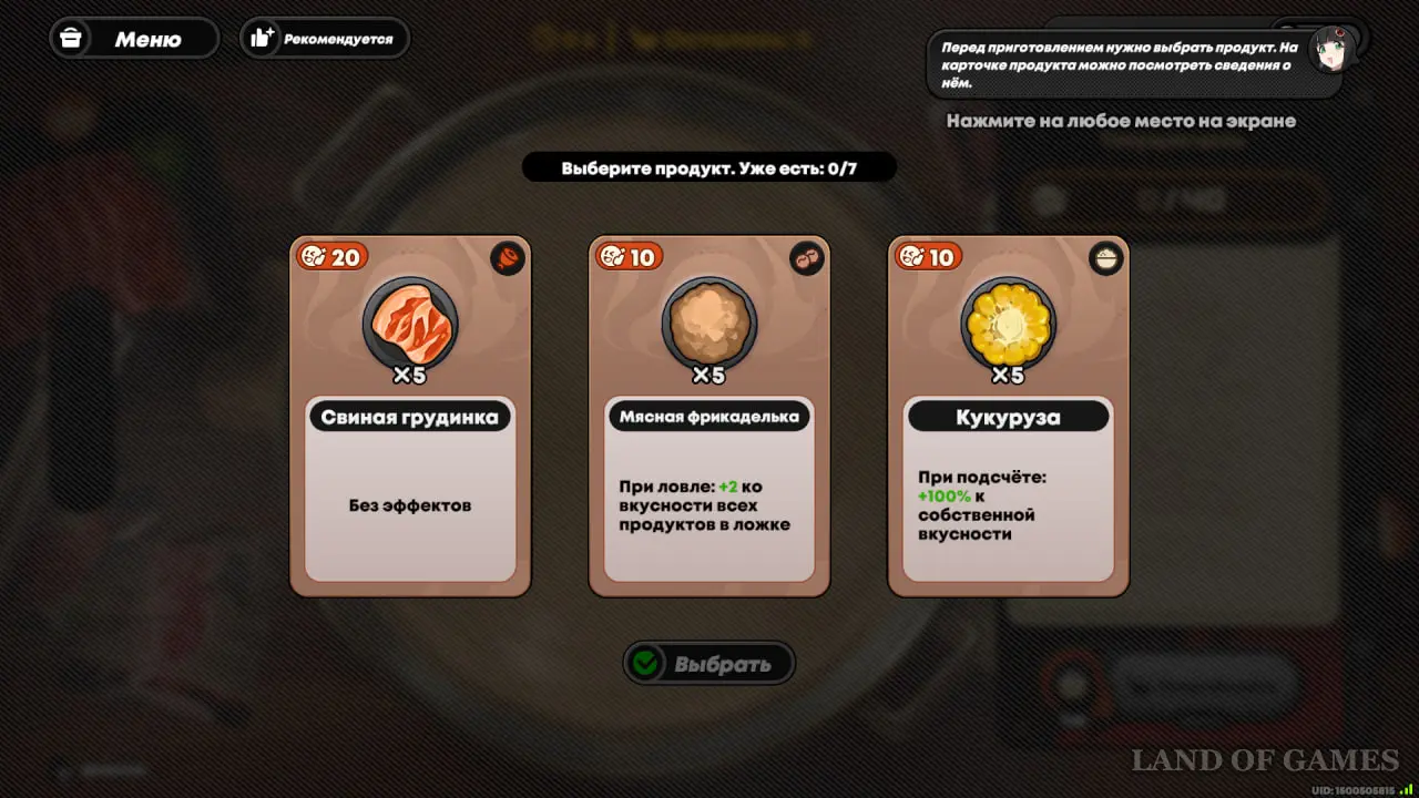 Когда придет время самостоятельно выбирать продукты, советуем сосредоточиться на мясе — например, некоторые фрикадельки при ловле баффают вкусность остального мяса в котле, что в итоге позволит получить высокий результат.