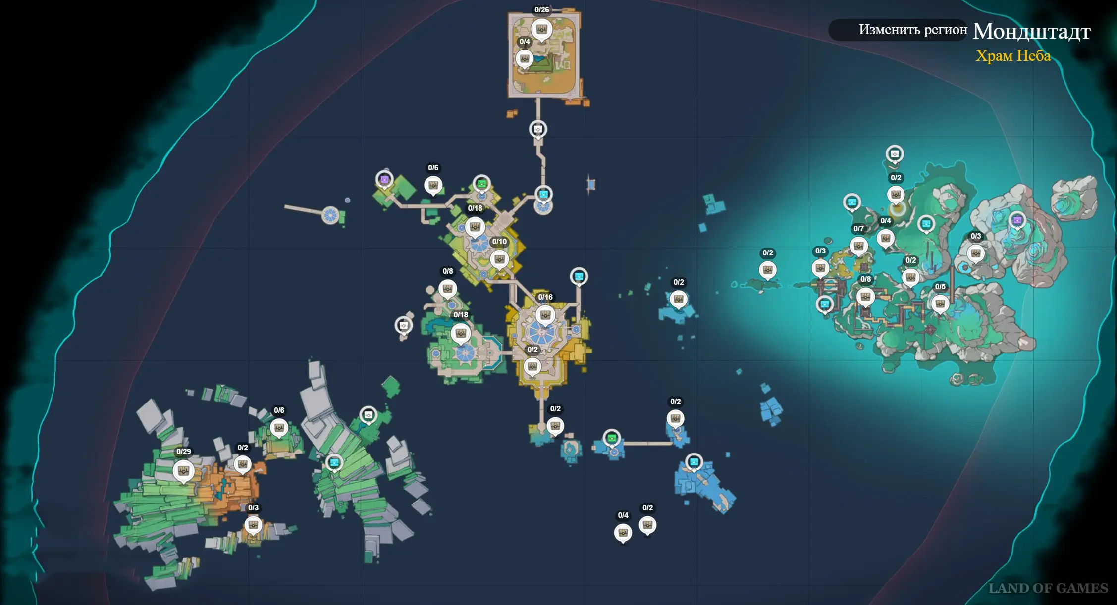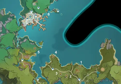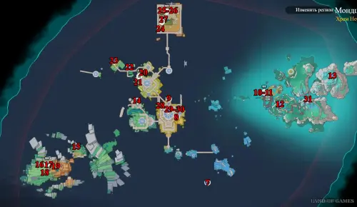 Более распространенные сундучки – в локациях версии 6.5 можно найти 91 штуку. В каждом из них хранятся по 5 примогемов и 2 печати Анемо. На карте ниже будет показано их примерное расположение.