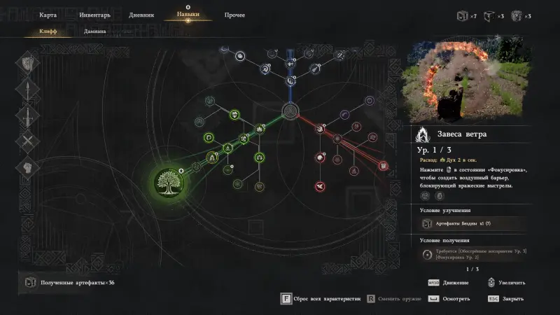 Перед началом убедитесь, что у вас открыта способность Завеса ветра. Без нее завершить испытание не получится.