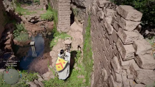 Добравшись до точки, вы увидите частично затопленные древние руины с каменными конструкциями и несколькими неактивными фонарями. Именно они играют ключевую роль в решении загадки.