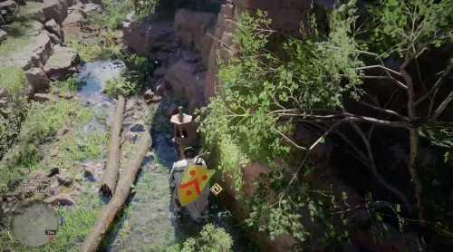 В центре области находится затопленное устройство, его легко узнать по деревянной выступающей части, наполовину скрытой водой. Подойдите к нему и используйте способность Завеса ветра. Она позволяет взаимодействовать с механизмом на расстоянии и вращать его.