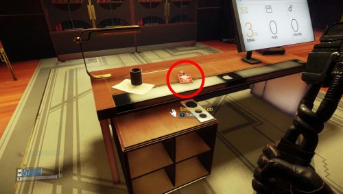 Вы можете найти эту ключ-карточку в офисе Моргана Ю. Поднимитесь по лестнице, находящейся между коридором безопасности и экспозицией Трэнстар. Затем поверните направо. С левой стороны короткого коридора прямо в его конце и находится ваш кабинет. Вы вряд ли пропустите его, так как на двери большими буквами будет написано имя главного героя. Однако дверь окажется защищена паролем. Направляйтесь к компьютеру справа от двери и проверьте записку в левом верхнем углу, чтобы узнать пароль к компьютерной системе. Затем перейдите к разделу электронных писем. Там вы и сможете узнать код доступа к двери. Пройдите внутрь и проверьте небольшую область слева. Рассмотрите стол – тут вы и отыщите ключ-карту, а также несколько материалов для крафта.