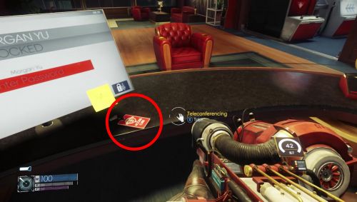 Эта карточка-ключ тоже расположена в кабинете Моргана Ю. Ее не очень сложно найти и вам не придется снова проходить десятки помещений, чтобы добраться до нее, так как Центр телеконференций расположен напротив коридора, в котором находится офис главного героя. От двери, ведущей в Центр, направляйтесь к дверце в свой кабинет. Если вы еще не открыли ее, то прочитайте предыдущий абзац, чтобы узнать как это сделать. Войдите в помещение и подойдите к столу. Ключ-карта расположена неподалеку от экрана компьютера.