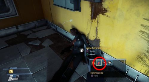 Лаборатория баллистики находится на первом этаже Аппаратной лаборатории – в северной части локации. К счастью, ключ-карта, которая открывает ее находится неподалеку. Пройдите немного дальше по коридору от двери лаборатории, и вы обнаружите труп Эймы Шмидт. Обыщите ее и возьмите нужный предмет.