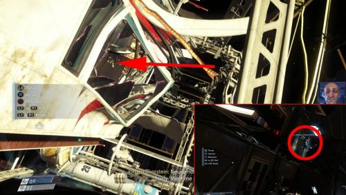 Когда вы окажетесь на вершите башни в Дендрарии, посмотрите на юг. Затем спрыгните на скалы и поверните налево. Прижмитесь к стене и пройдите за угол, а после пригнитесь и пробегите под стальными балками. Снова сверните налево, как только окажетесь под конструкцией. В итоге вы заметите сломанный узел, стреляющий искрами. Почините его с помощью ГИПС-пушки и подойдите к телу, лежащему неподалеку. Это труп Мариетты Кыркос – обыщите его, чтобы отыскать ключ-карту для каюты Джады Маркс.
