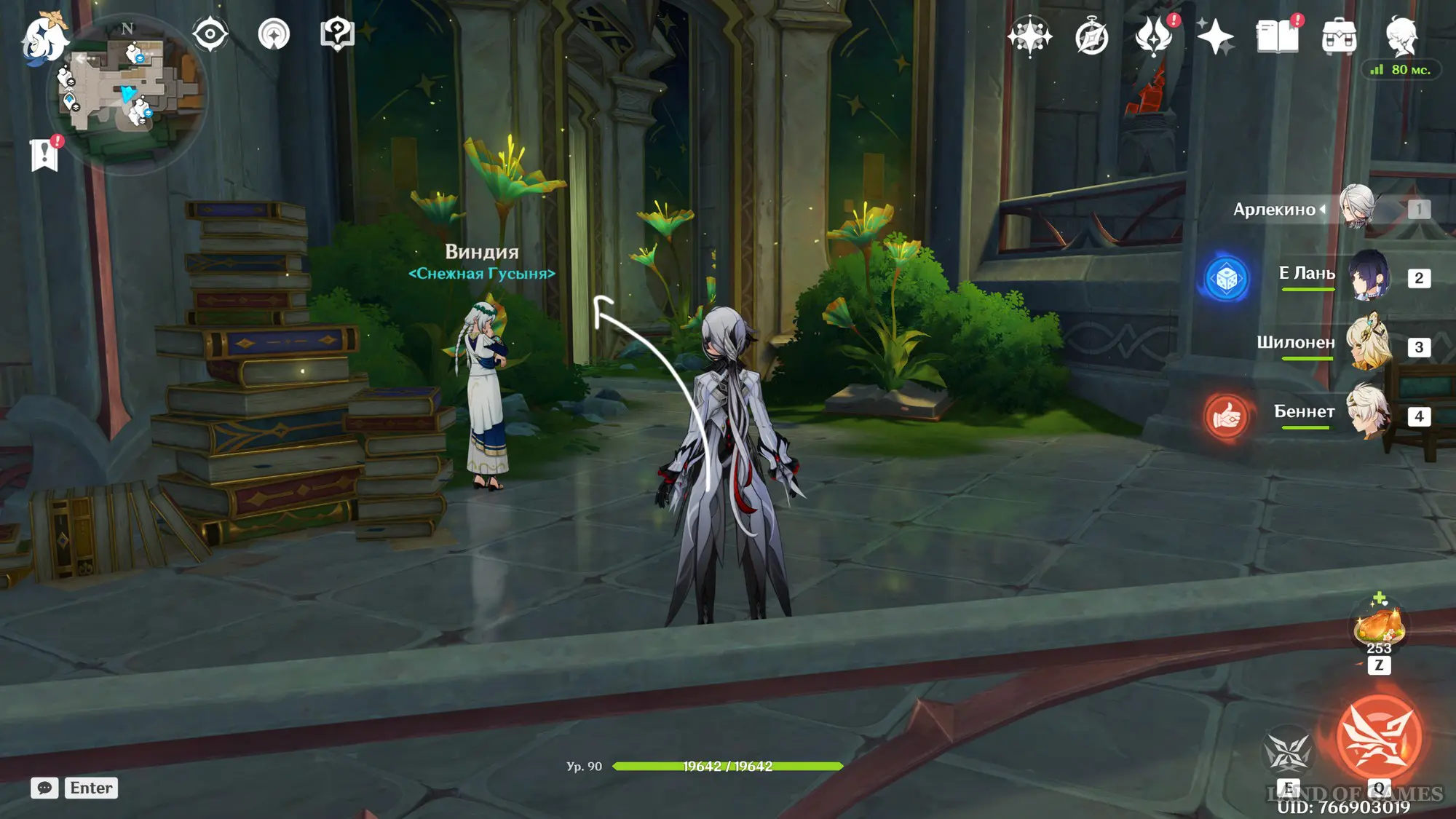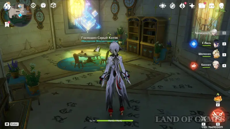 Переместитесь к самому западному телепорту в Зале Махавайпулья, а затем бегите вперед к ограждению, перепрыгните его и спланируйте на восток на нижний уровень библиотеки. Затем развернитесь и бегите налево. Пройдите мимо Виндии и начните бежать вперед по коридору, пока не окажетесь в небольшой комнате, где за столом будет сидеть Господин Серый котик. Подробнее про него мы рассказали в отдельном руководстве.