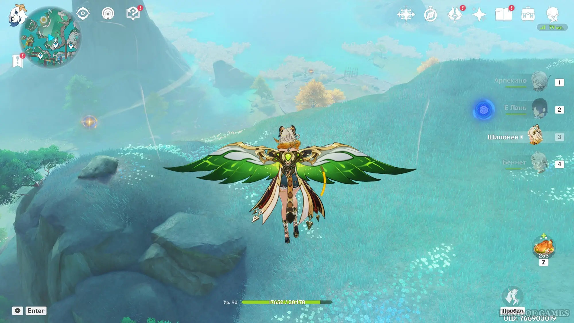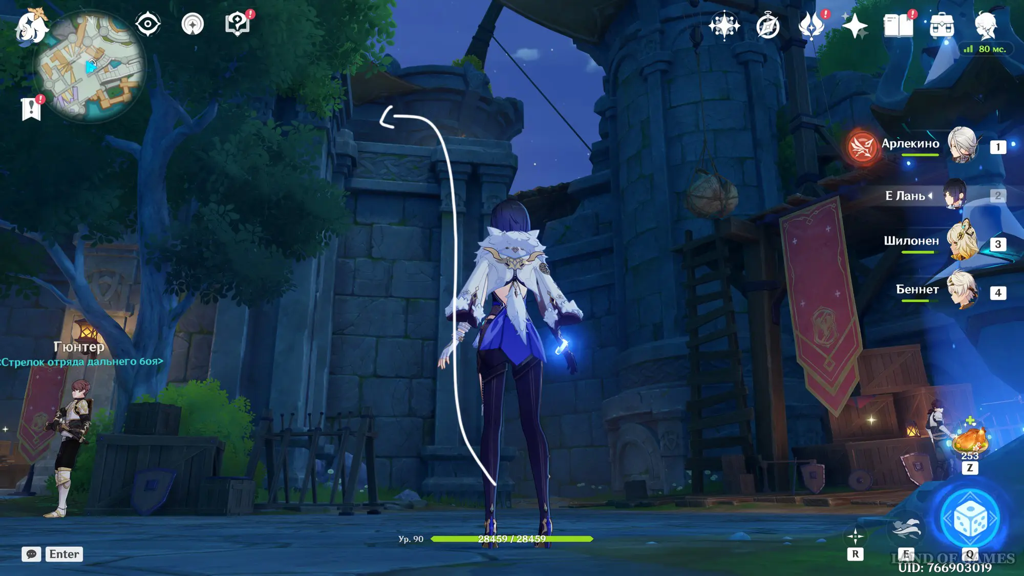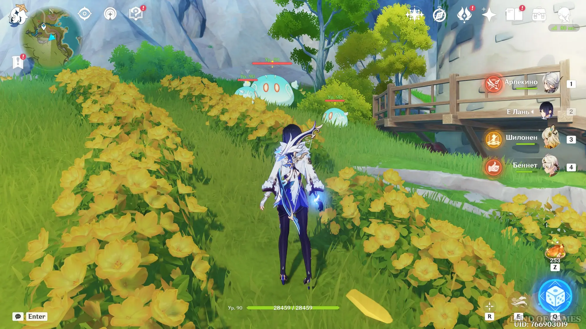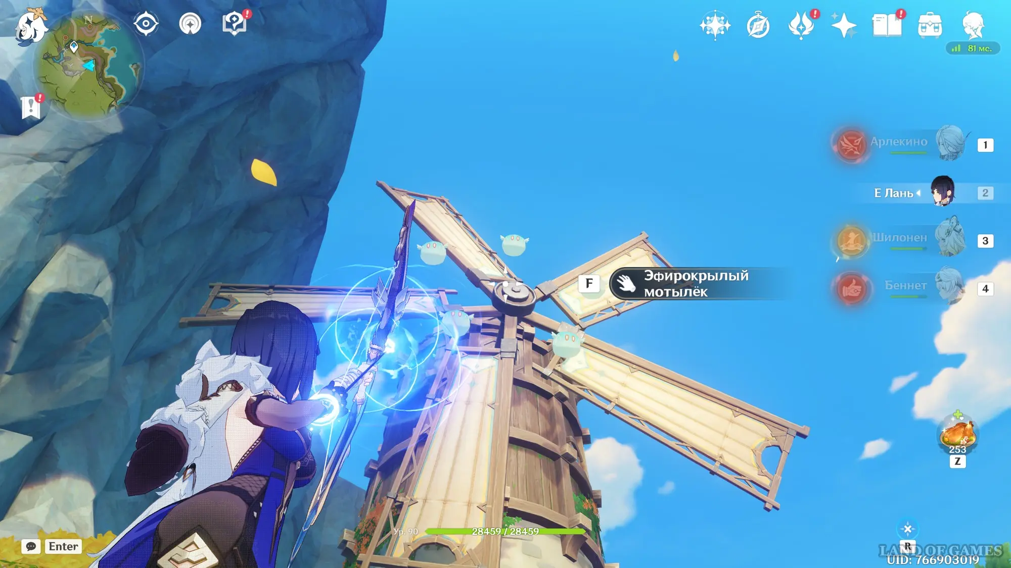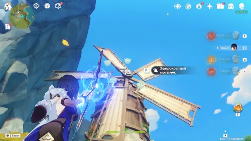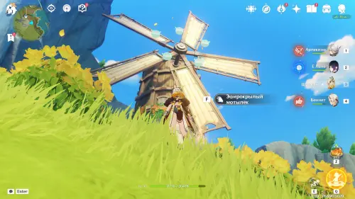 Переместитесь е телепорту на указанной области, а затем развернитесь и бегите к мельнице, расположенной на юге. Прямо возле ветряных лопастей вы обнаружите несколько летающих Анемо слаймов. Выберите лучника и с помощью прицельного выстрела перебейте всех противников.