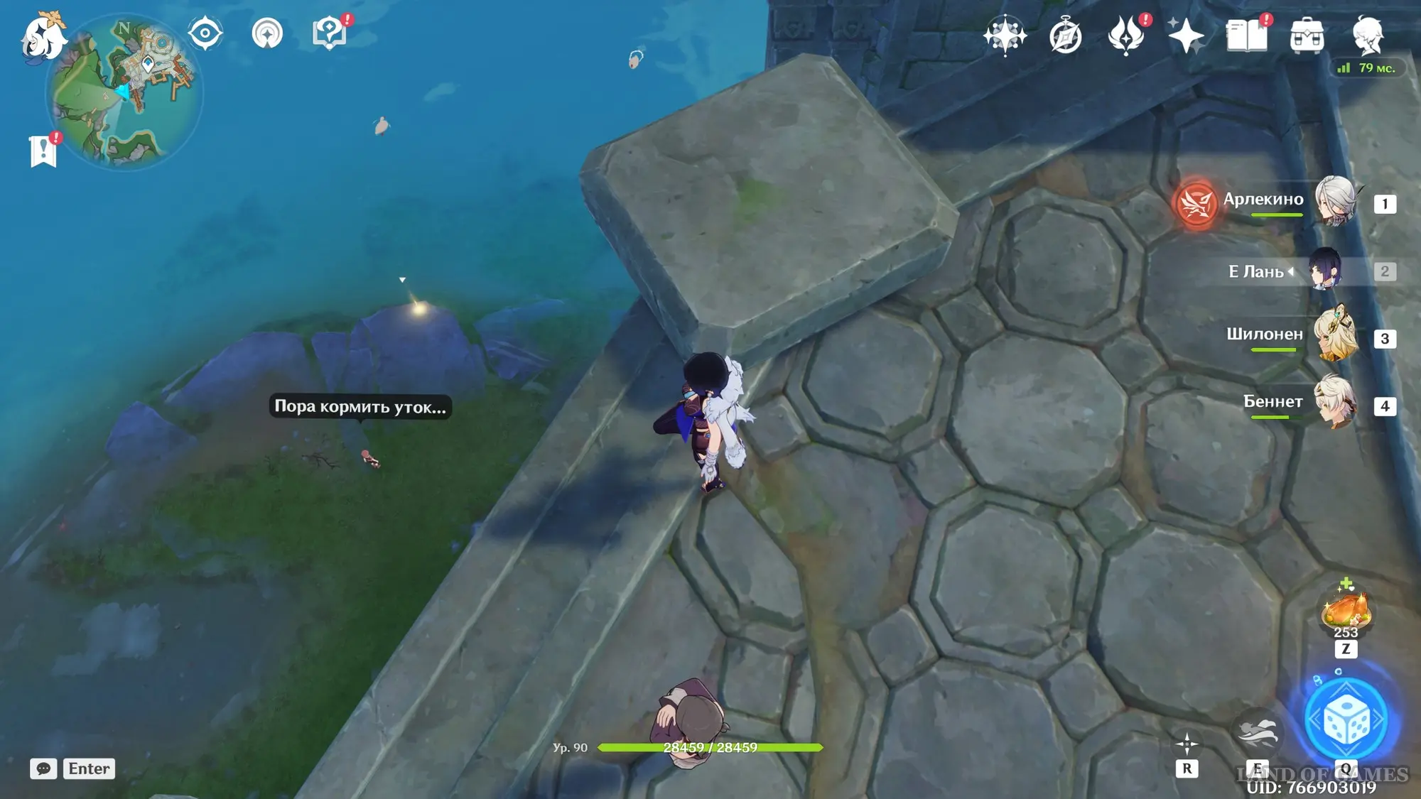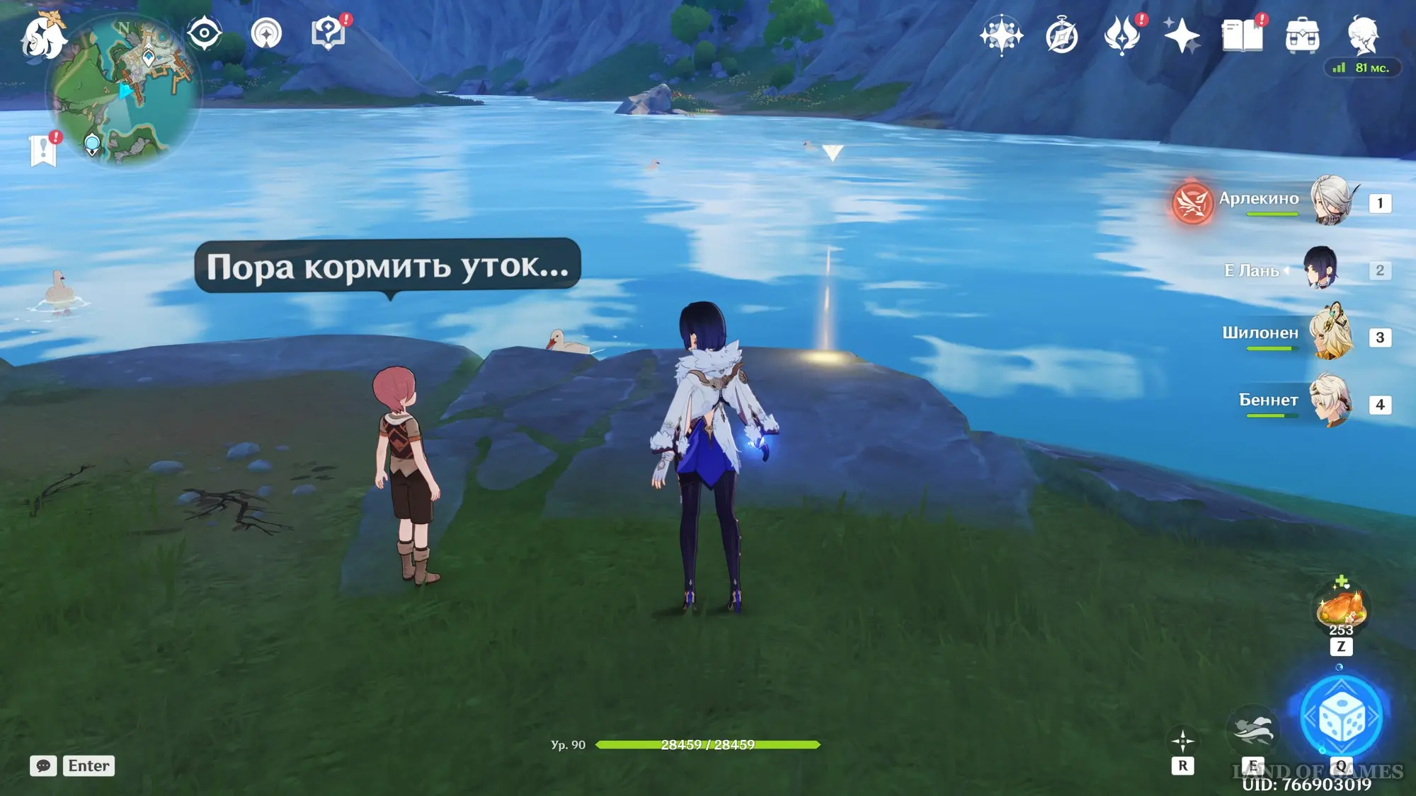 Переместитесь к западному телепорту Тернового порта, а затем развернитесь и бегите на юг к выходу из города. Оказавшись возле моста, сверните влево и подойдите к краю обрыва. Внизу вы обнаружите мальчика, желающего покормить уток. Спрыгните к нему.