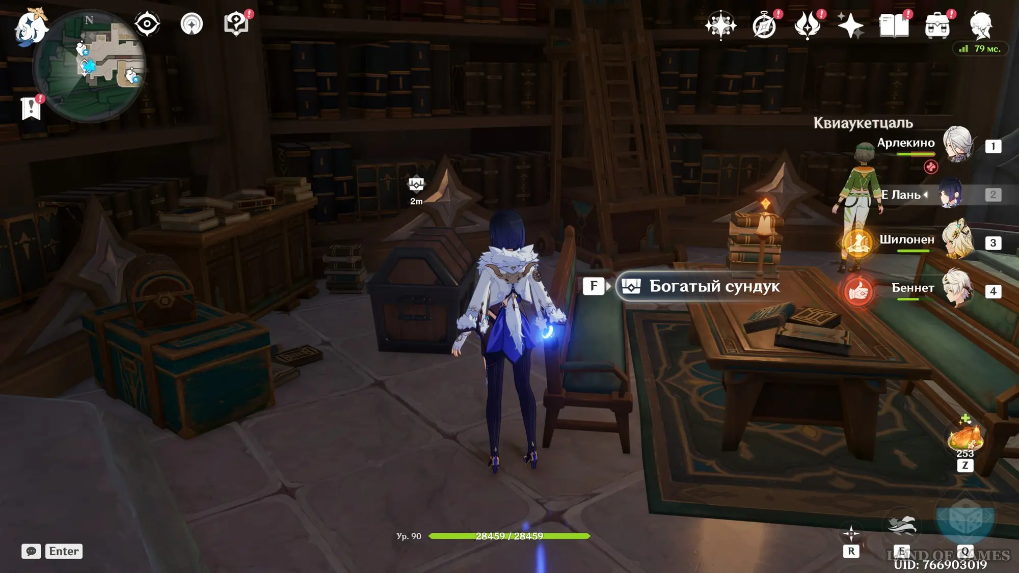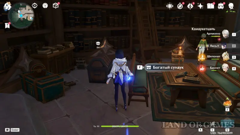 Девушка приземлится и встанет возле одной из книжных стенок. Поболтайте с ней, после чего вы получите от нее в подарок богатый сундук.