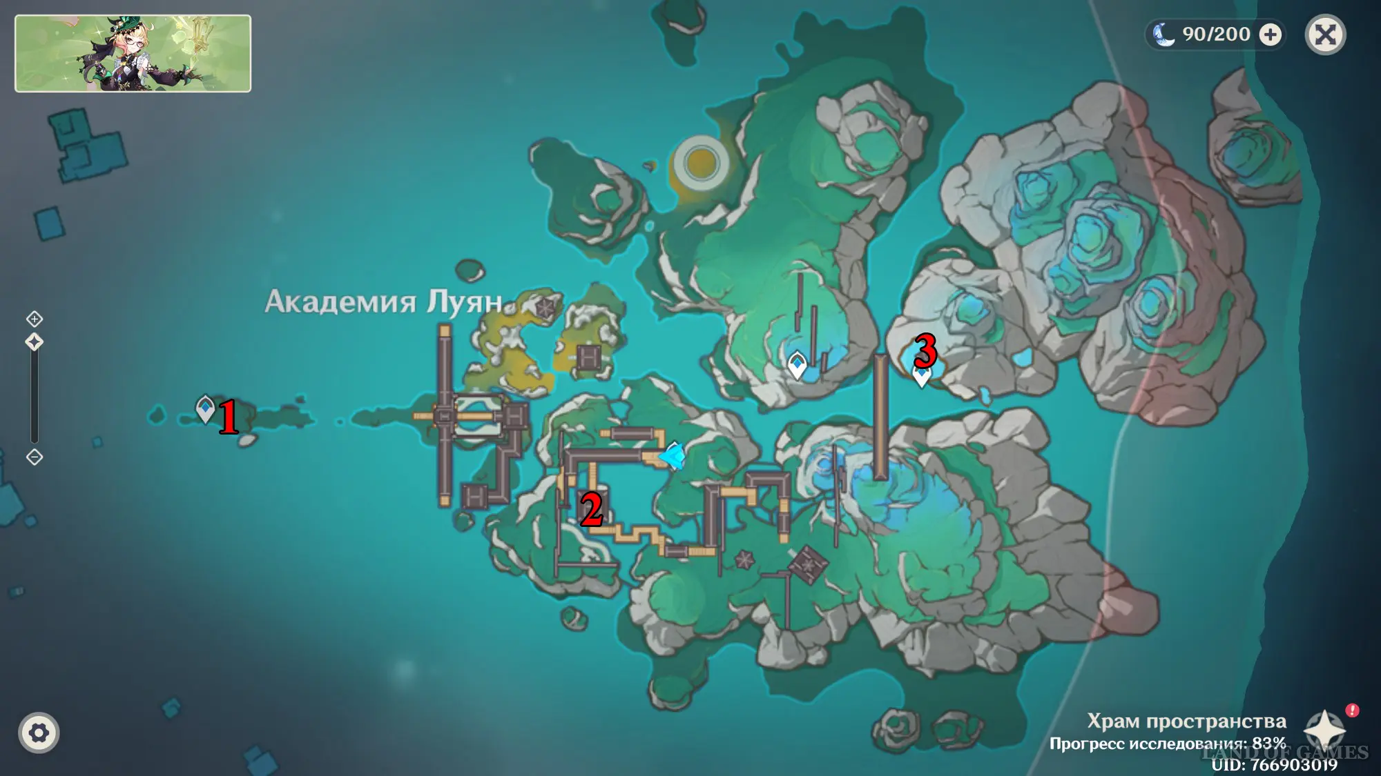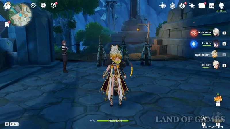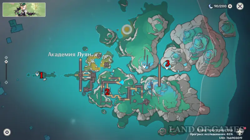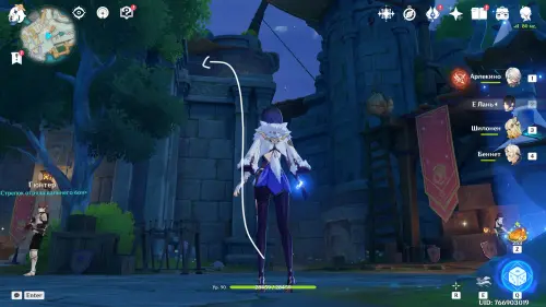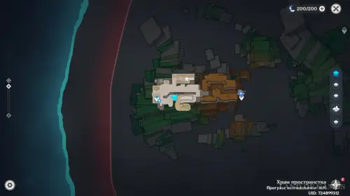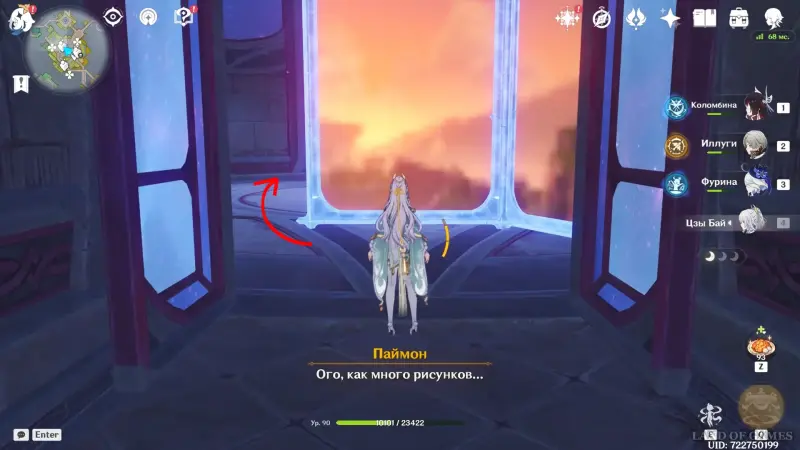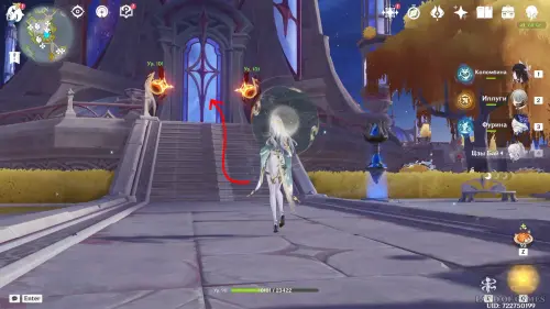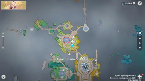 Переместившись в Храм пространства и открыв территорию Центра Зала столпов, проследуйте на северный остров и войдите в башню. Внутри вы обнаружите зеркальные полотна с изображениями знакомых локаций Тейвата — встаньте у пульта в центре зала, чтобы активировать испытание. Его подробное прохождение представлено в нашем отдельном материале.