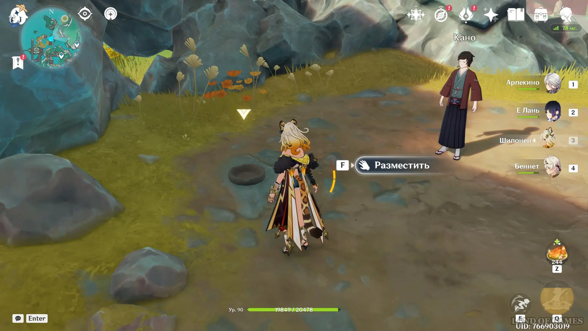 После прохождения задания мира «Да здравствует жизнь» снова возвратитесь в указанную область, переместившись к центральному телепорту. Затем бегите на север в сторону каменной беседки. Позади нее вы обнаружите персонажа по имени Кано – поболтайте с ним.