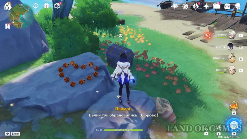 Далее подойдите к белому огоньку возле побережья моря и нажмите кнопку «Разместить». Сразу после этого неподалеку от мальчика появится обычный сундук.