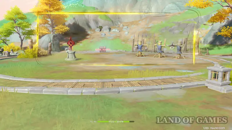 Вновь поговорите с девушкой, а затем примитесь за прохождение испытания. Перед этим убедитесь, что в вашей команде присутствует лучник. Вам нужно будет уничтожать синие манекены, не трогая красные. В определенный момент мишени начнут появляться вдалеке от вас рядом с красными бочками – именно в этот момент вам и понадобится персонаж с луком.