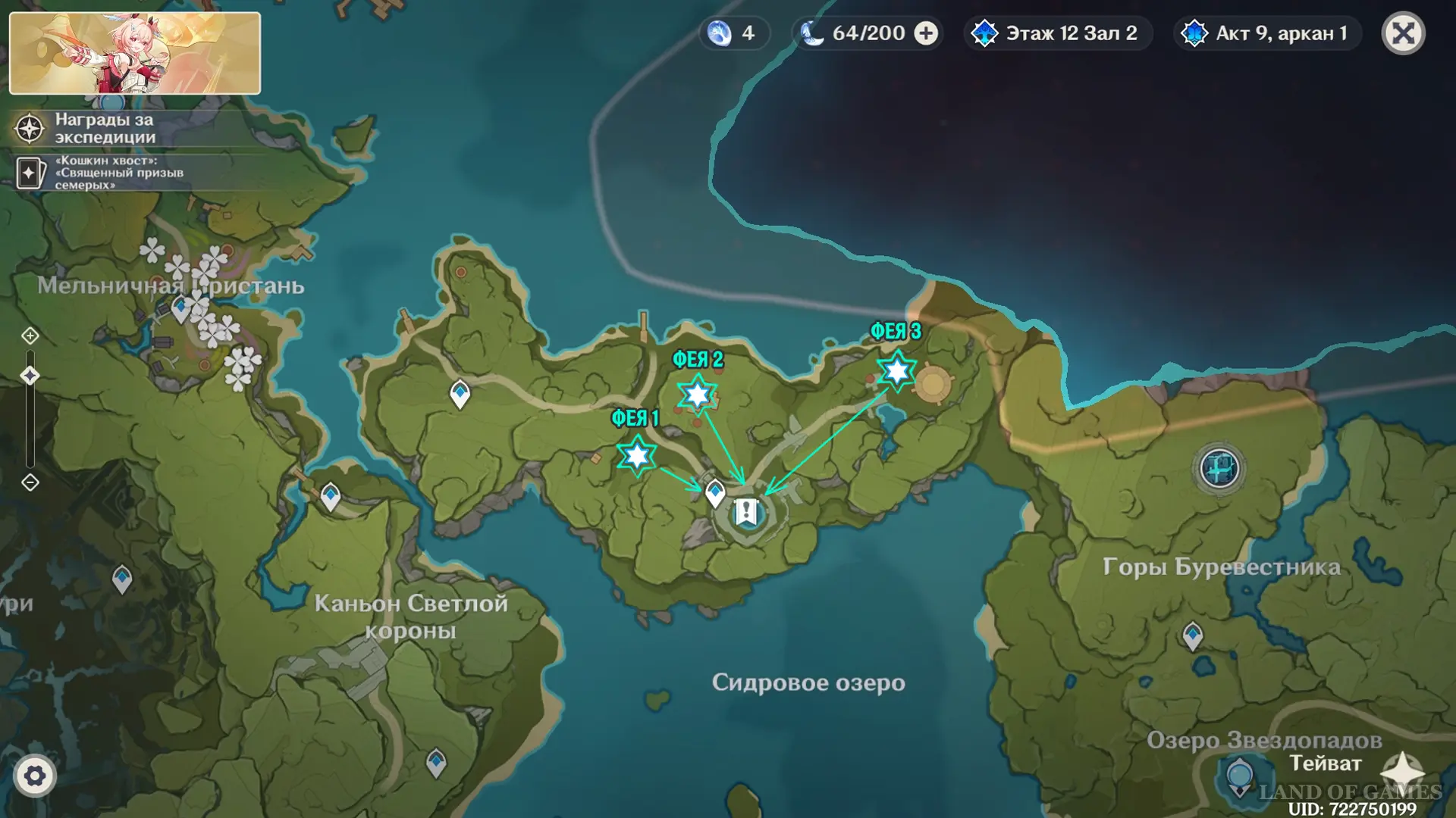 Головоломка с тремя феями на юге Пика ветров в Genshin Impact