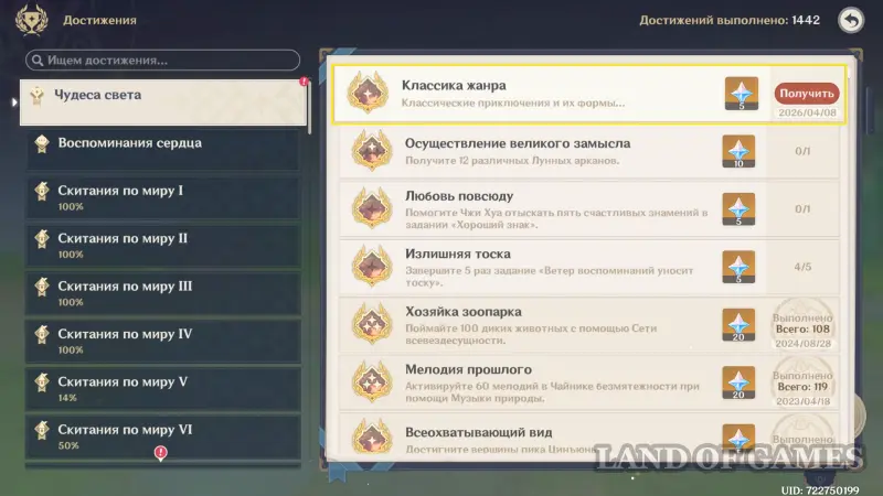 Ачивка «Классика жанра» с описанием «Классические приключения и их формы...» разблокируется автоматически после победы над руинными молотильщиками на дне осушенного колодца. Данная ачивка относится к коллекции «Чудеса света», а награда за ее получение составляет 5 примогемов.
