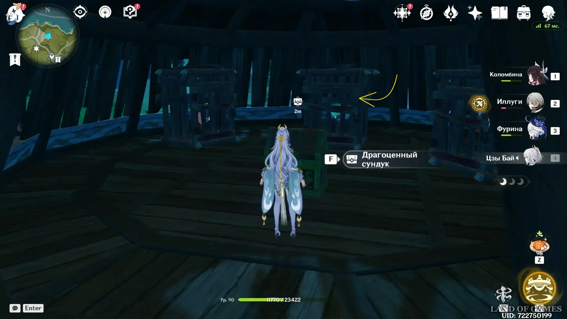 В конце вы приземлитесь на небольшом островке, где перед вами окажутся обычный, богатый и драгоценный сундуки. Их расположение показано на скриншотах ниже.