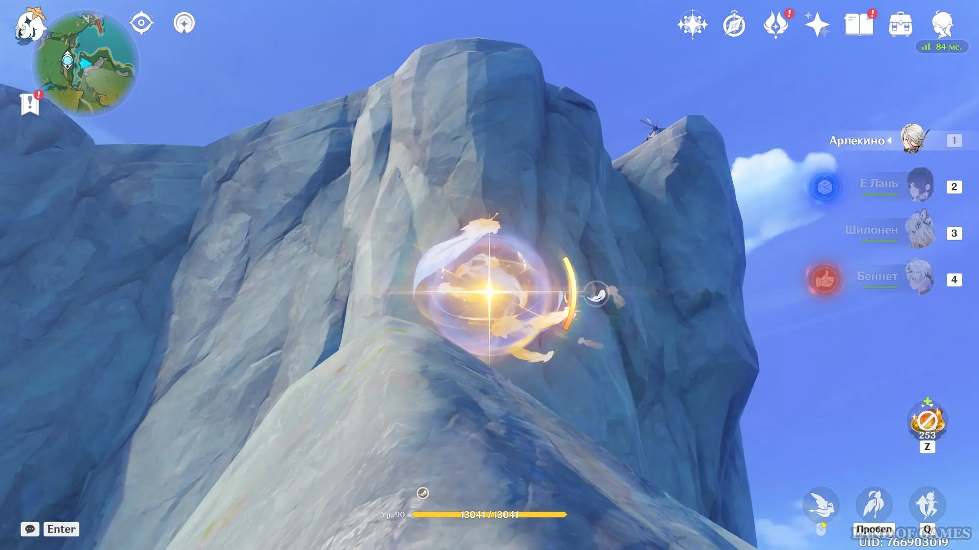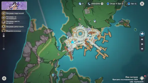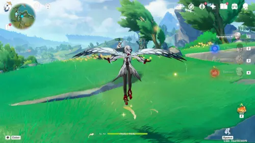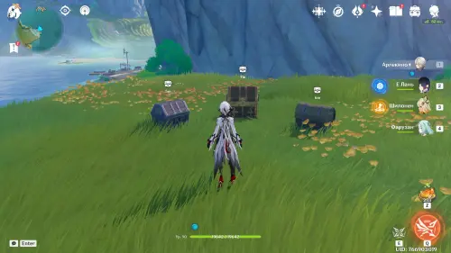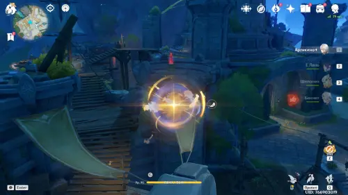 Переместитесь к статуе Анемо Архонта в указанной области, а затем пройдите к краю обрыва напротив постройки, и впереди вы увидите гарпастум, парящий на вершине утеса. Спланируйте к нему и притянитесь (клавиша «Т»), чтобы превратиться в мотылька. Далее нажмите «Пробел», начав подниматься наверх. Залетите на вершину утеса, где вы обнаружите Анемо тотемы и похитителей сокровищ.