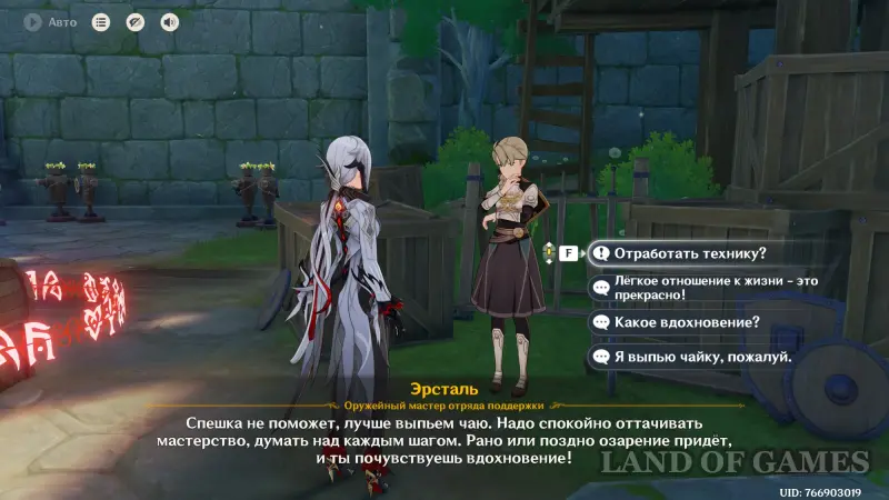 Вернитесь к предыдущему телепорту, а затем развернитесь и подойдите к девушке по имени Эрсталь, стоящей рядом с заблокированным сундуком. Поболтайте с ней и согласитесь помочь ей отработать технику стрельбы для начала нового испытания.