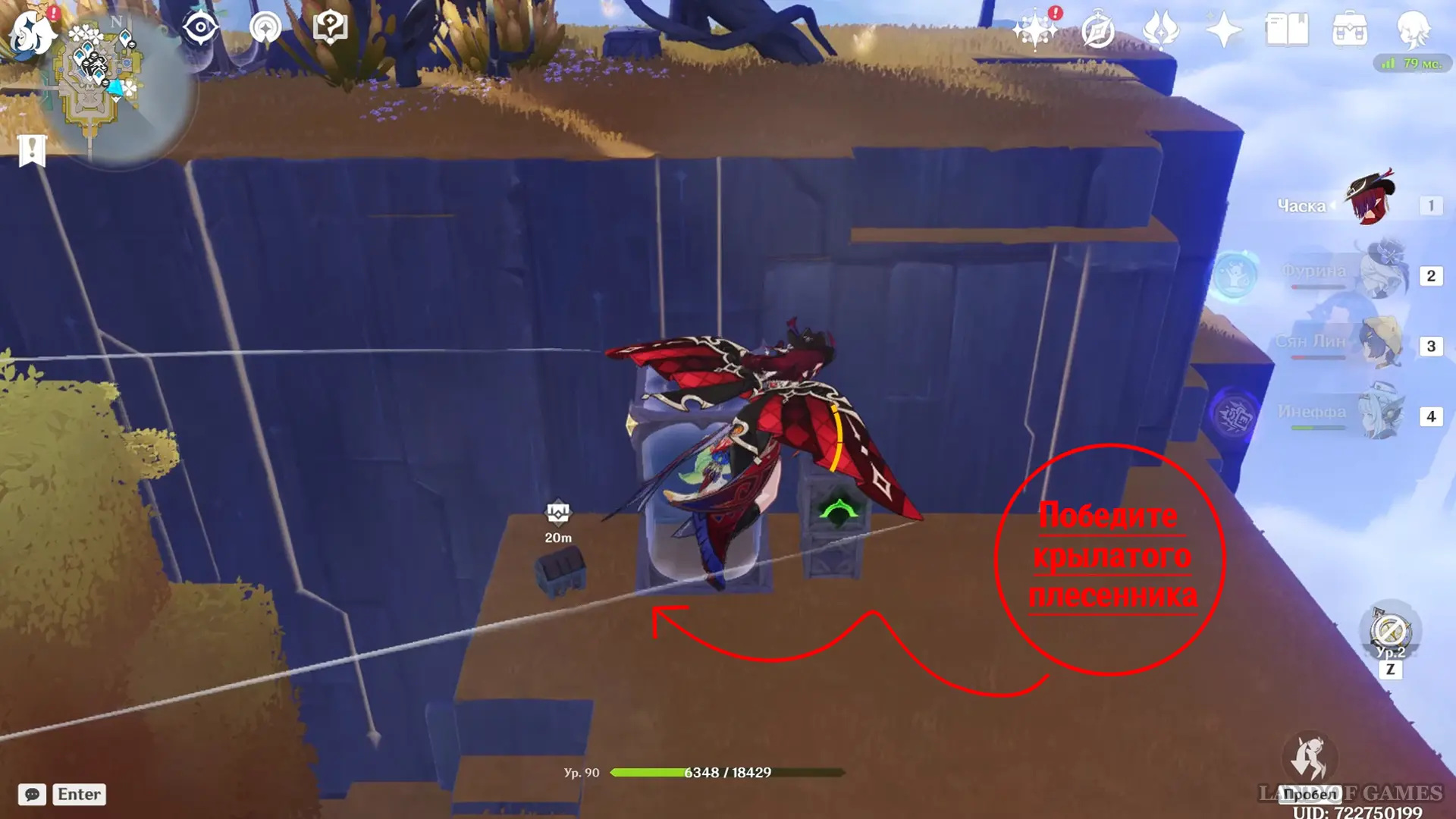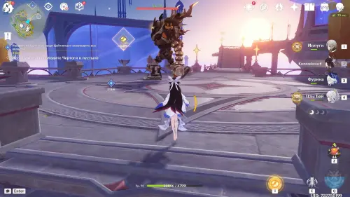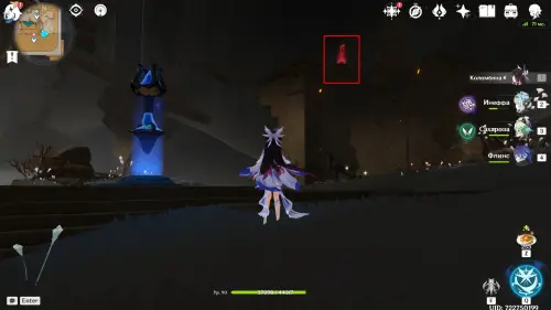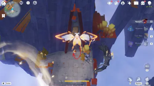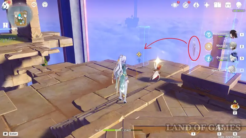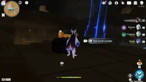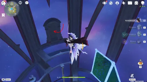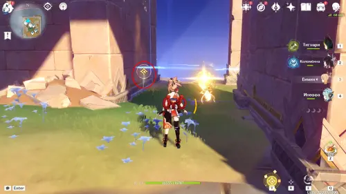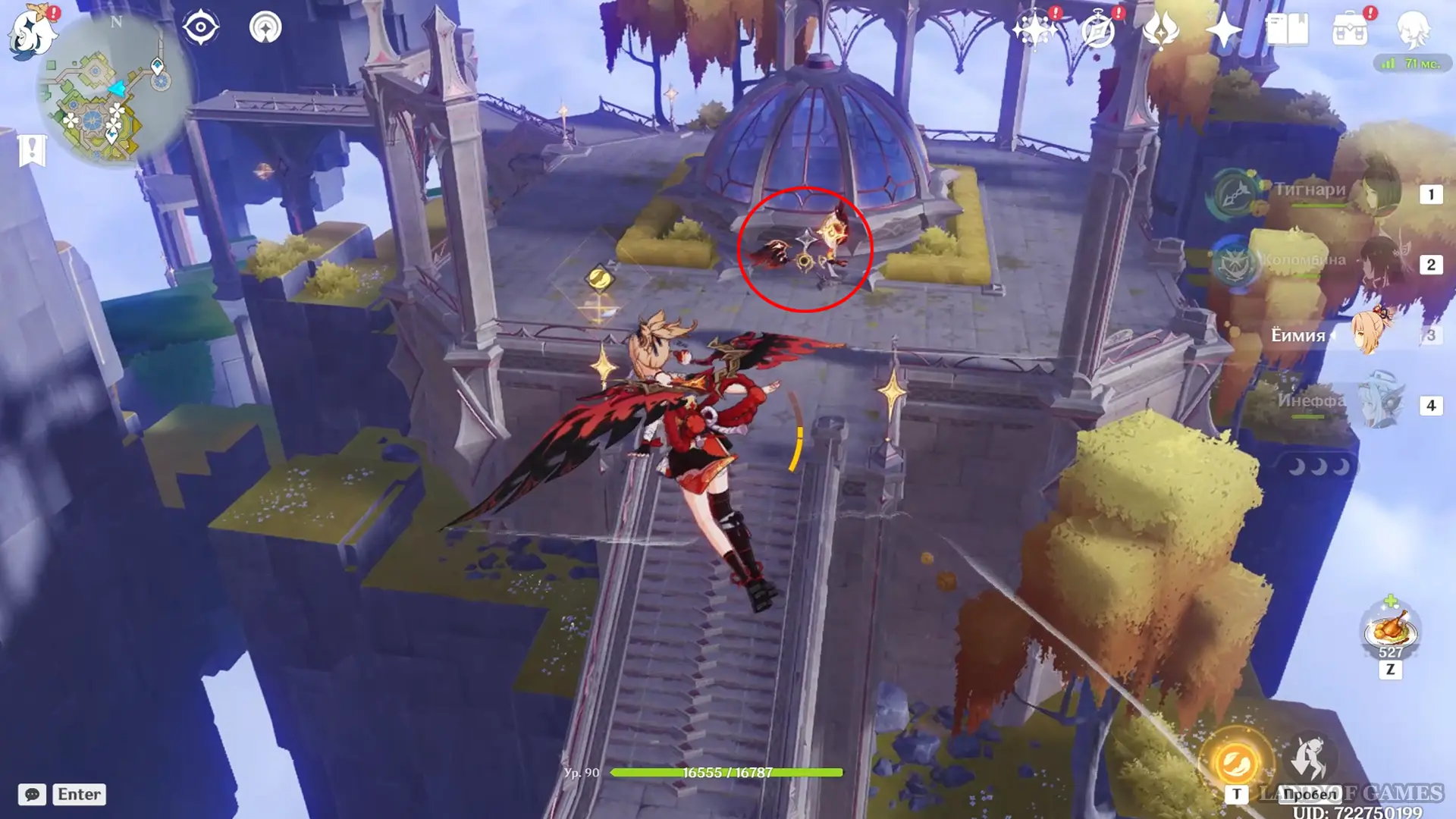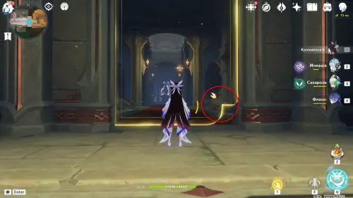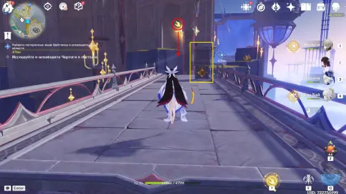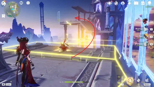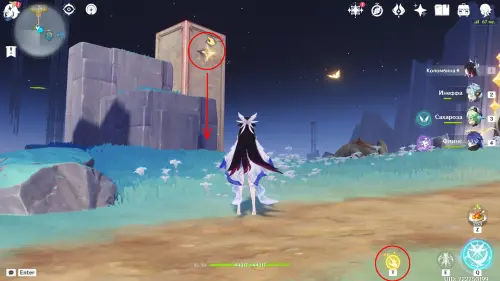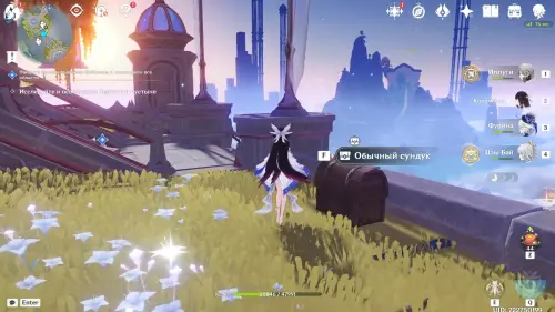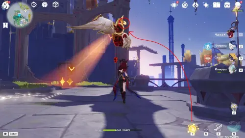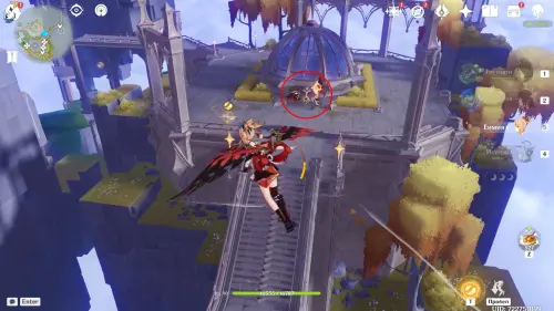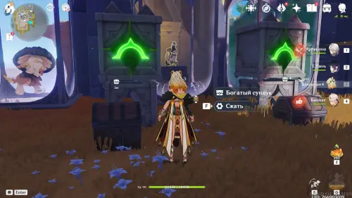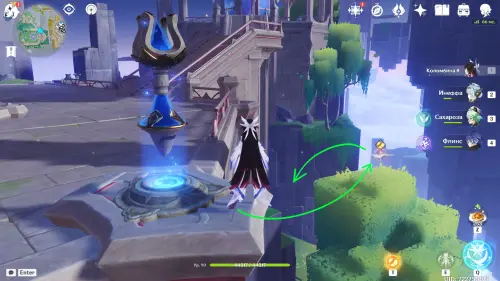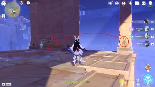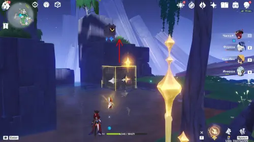Двигайтесь на север, к Центру Зала столпов, и поднимайтесь на возвышенность справа от главного входа в башню – здесь нужно победить летающего дендро плесенника, а затем забрать богатый сундучок, открывающийся после доставки врага в клетку.