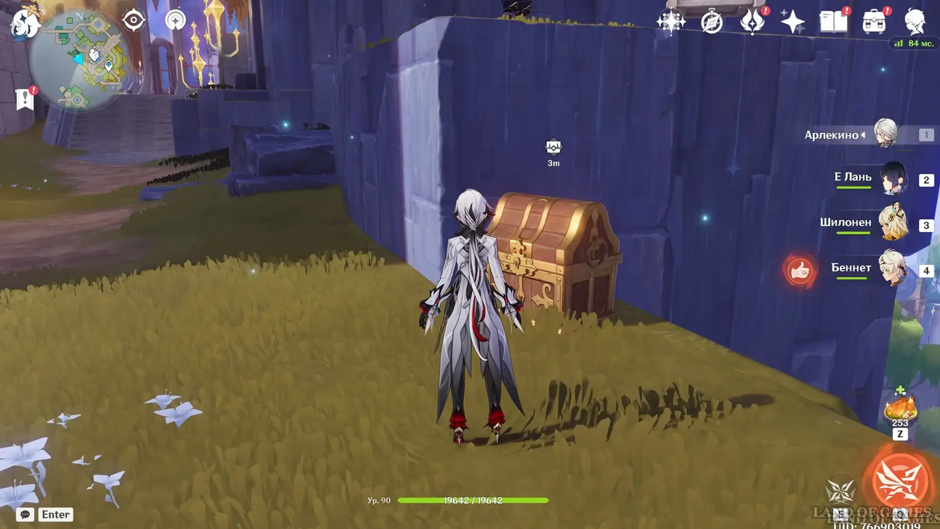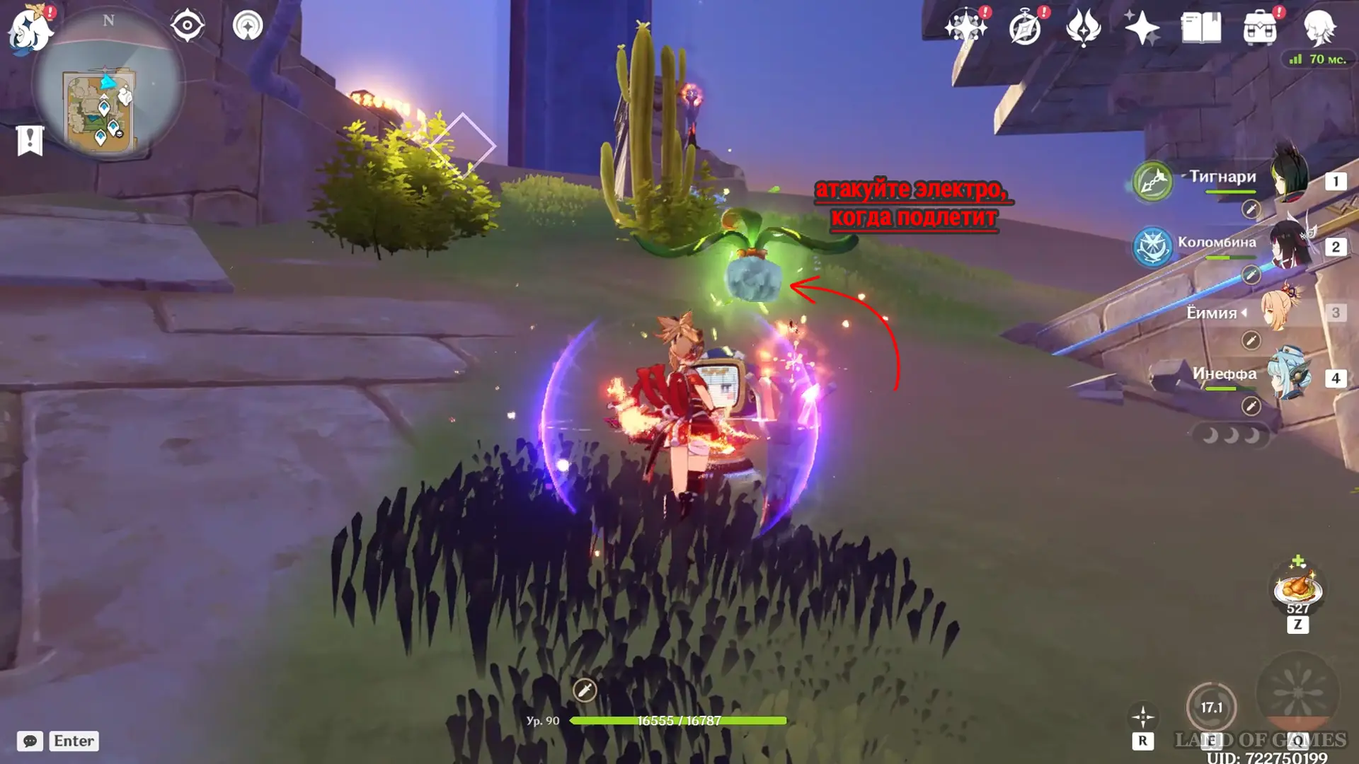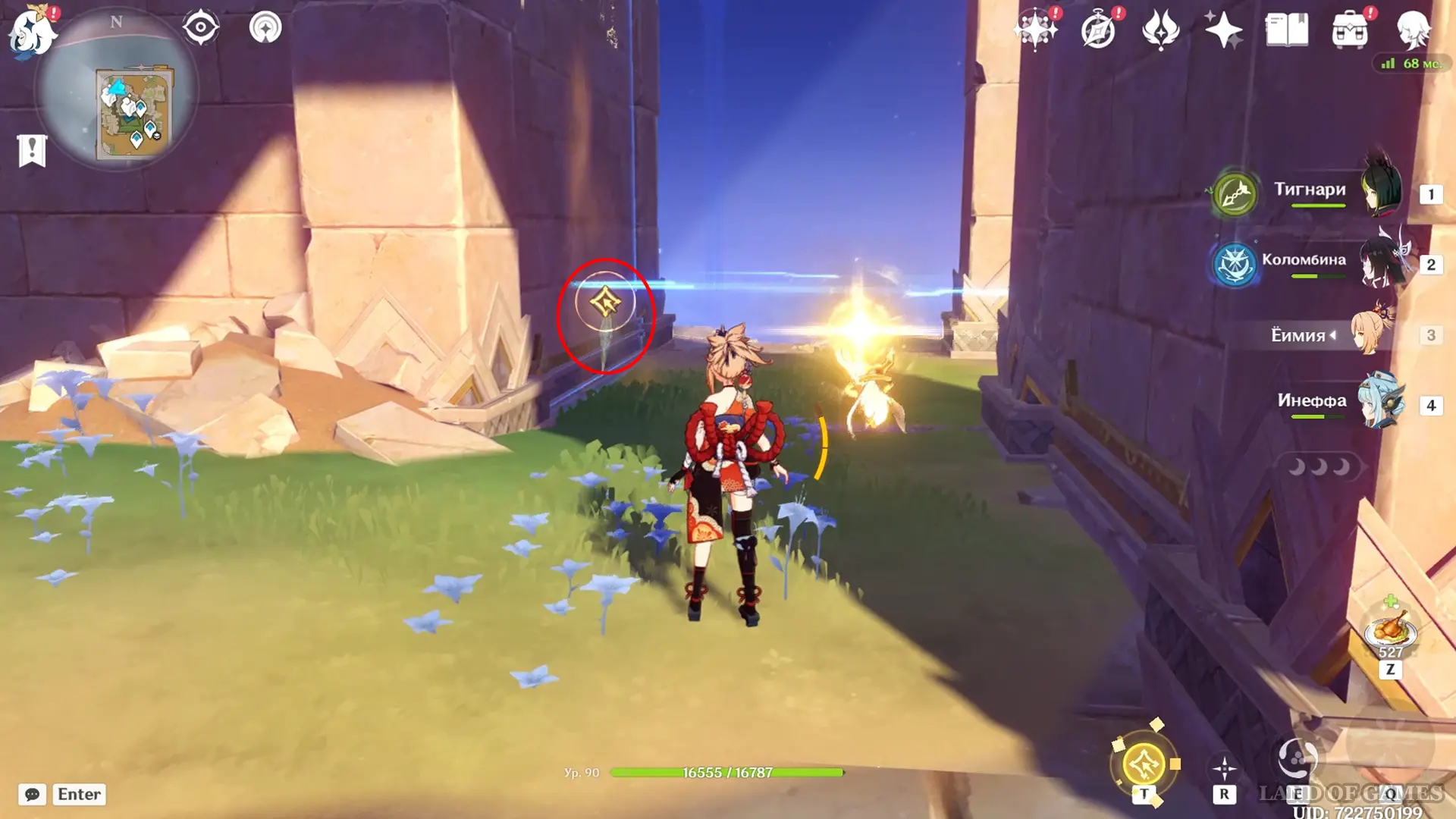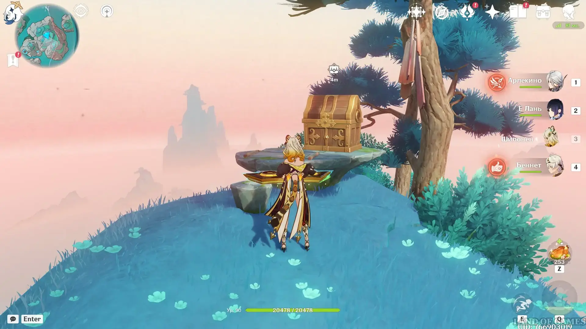 Двигайтесь на север, к Центру Зала столпов, и поднимайтесь на возвышенность справа от главного входа в башню – здесь нужно победить летающего дендро плесенника, а затем забрать богатый сундучок, открывающийся после доставки врага в клетку.