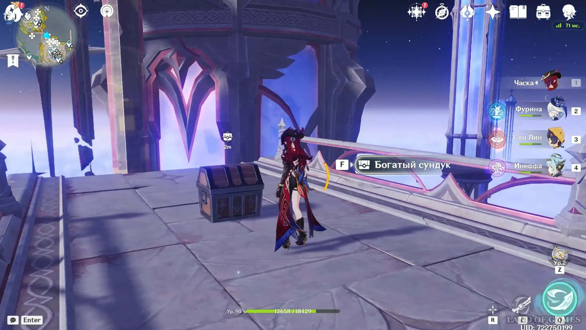 За решение загадок с зеркалами и метателями в башне на севере Центра можно получить сразу три сундука: один роскошный и два богатых. Подробный разбор этой активности с пошаговым прохождением доступен в отдельном гайде.