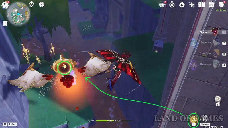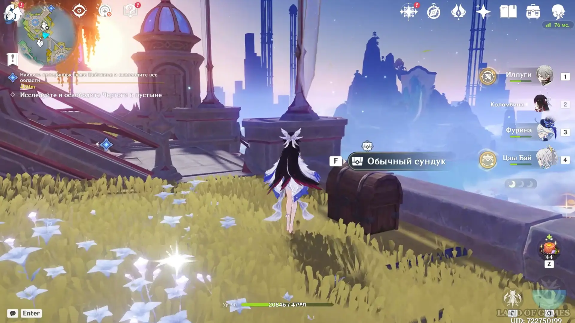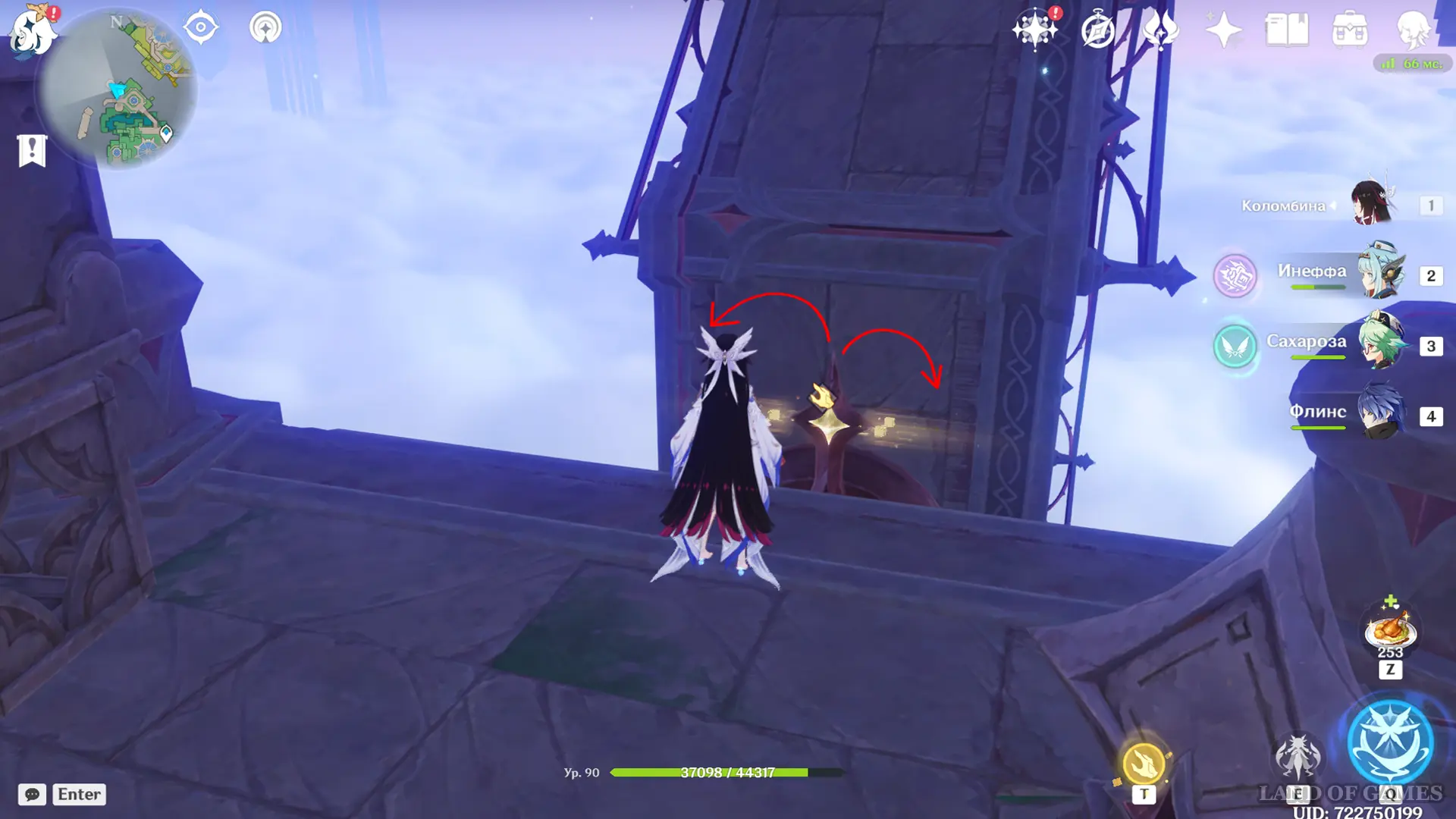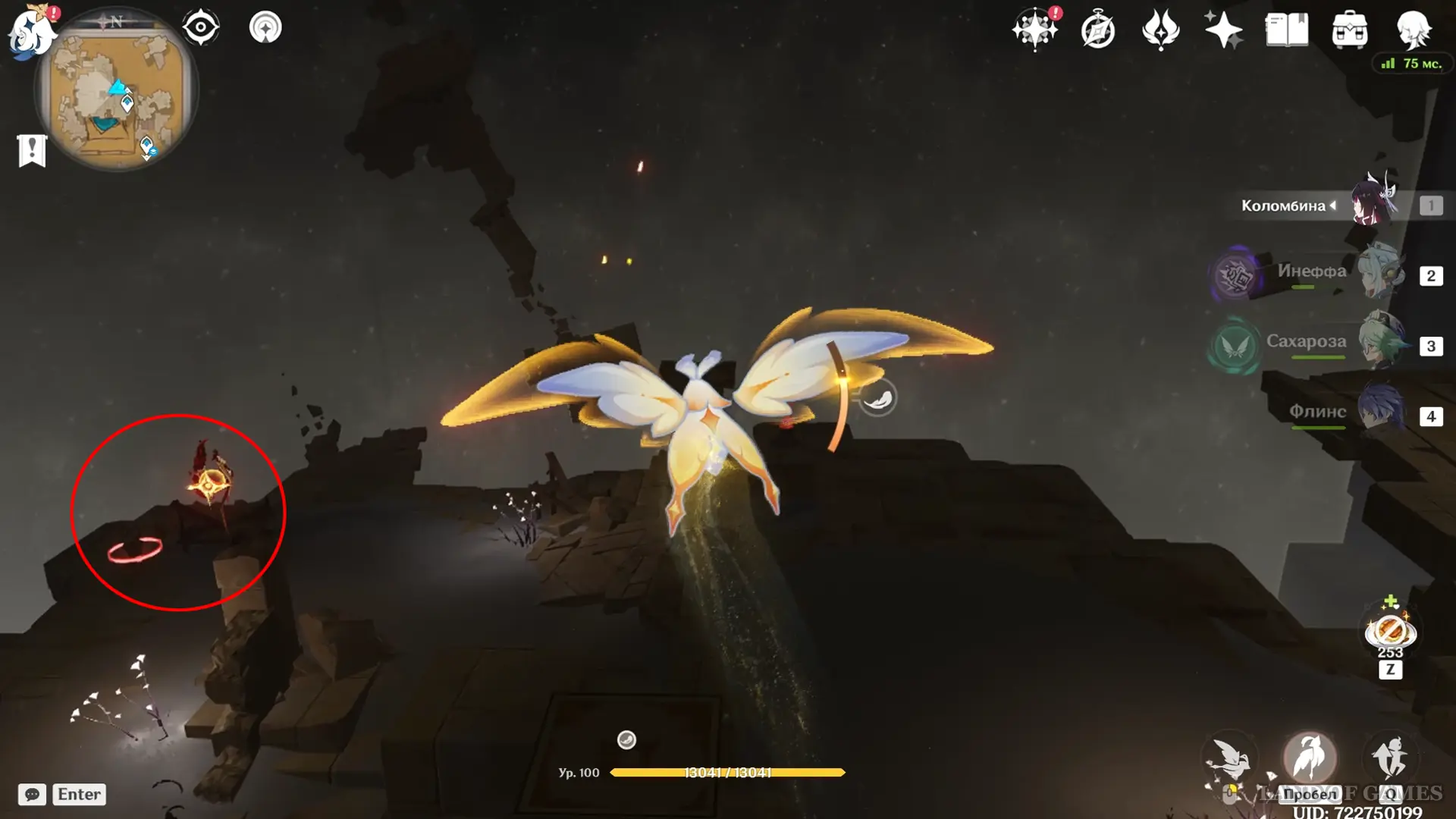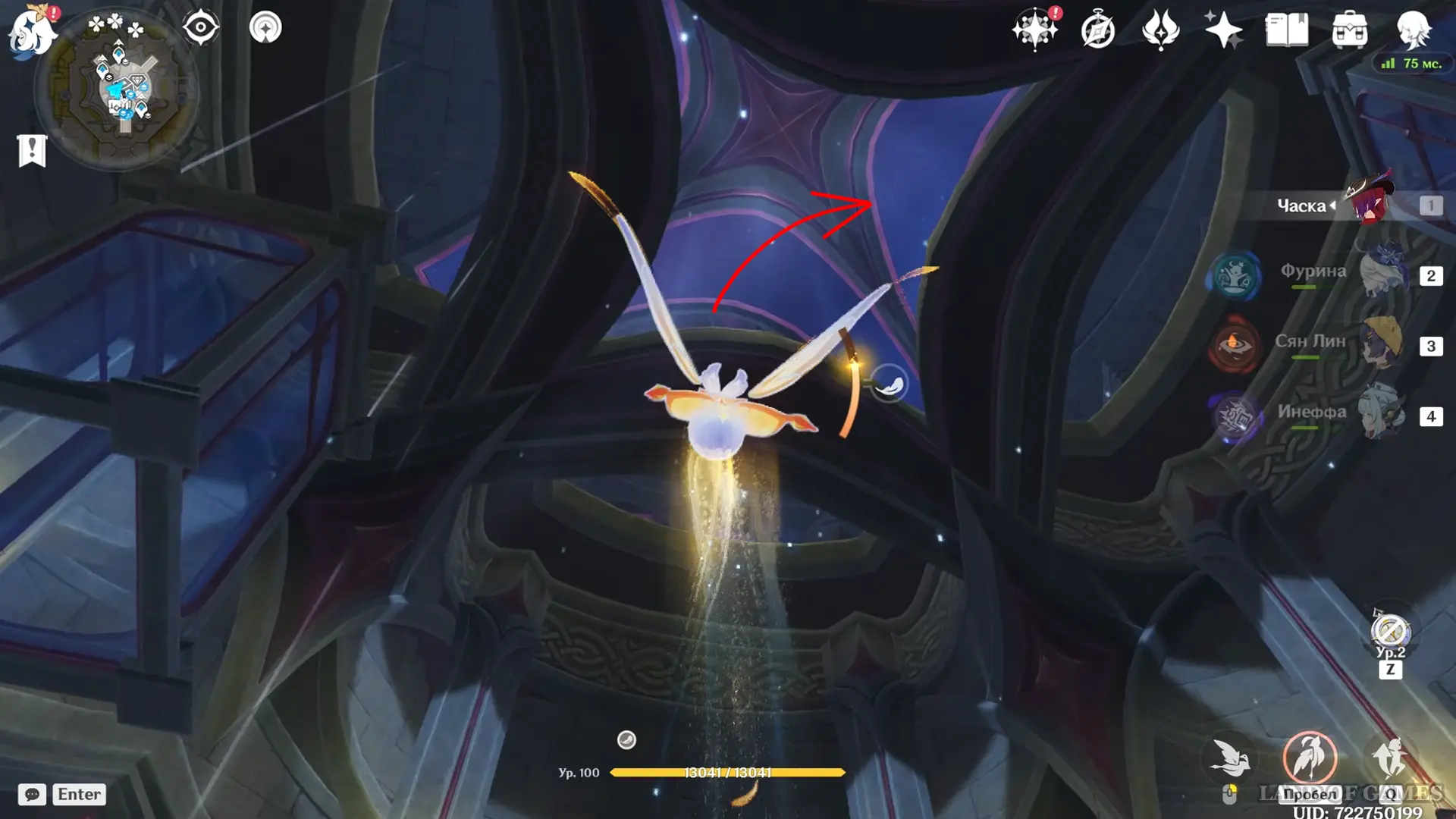 Первое испытание представляет собой «полуавтоматический» полет на мотыльке. Весь маршрут, в конце которого вас ждет Богатый сундук, подробно показан на видео выше.