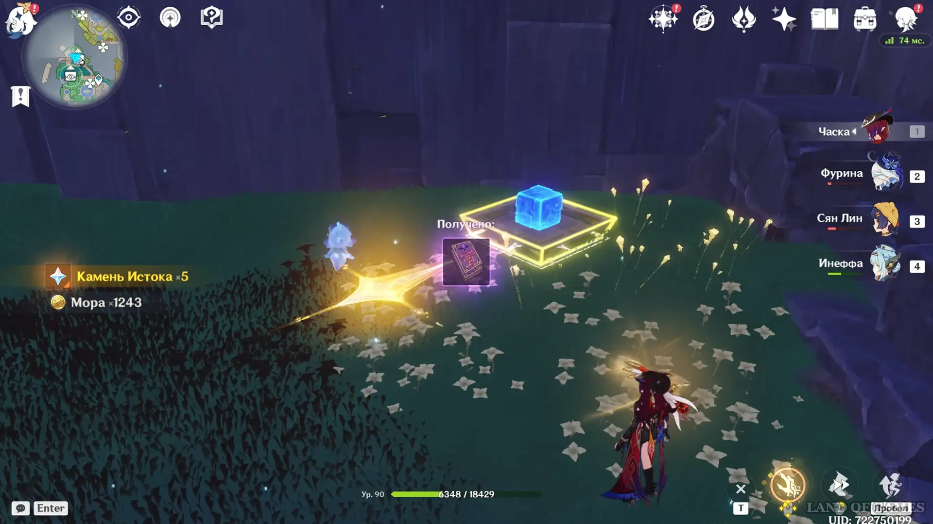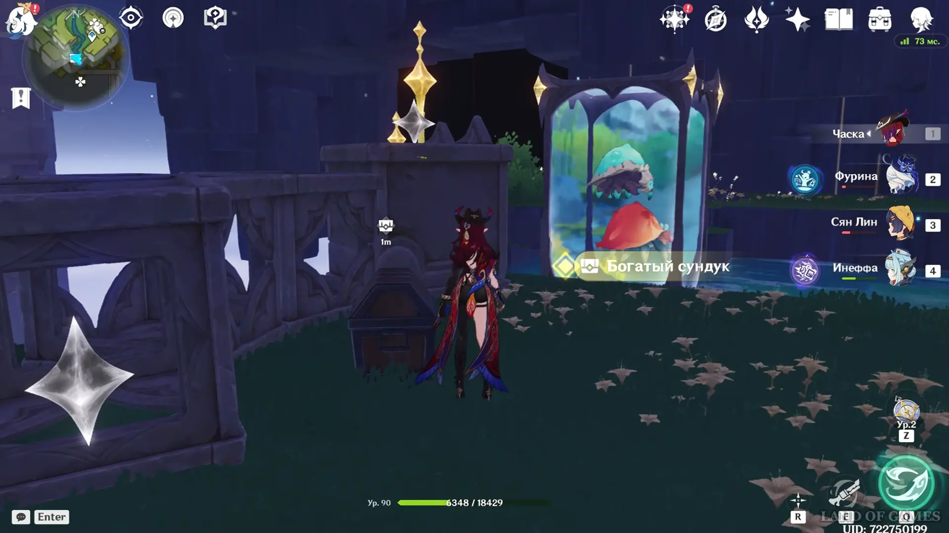 В итоге вы попадете в пещеру с книжной дверью. За ней вас ждет серия сражений: сначала с бронекрабами из Фонтейна, а затем с плесенниками из Сумеру. После победы вы освободите застрявшего в страницах Тосалиса и заберете два богатых сундука.