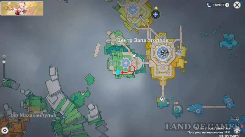Подробное прохождение всех этапов управления пространством в пещере на севере Зала Махавайпулья вы можете найти в нашем отдельном гайде (см. пункт про 15-й сундук в Храме пространства).
