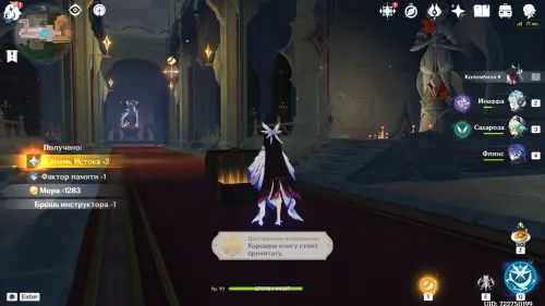 Если Перевозчик поглотил кубы в правильном порядке (гидро → лунный → пиро), он устремится к центру площадки и восстановит экспонат, дав за решение богатый сундучок.
