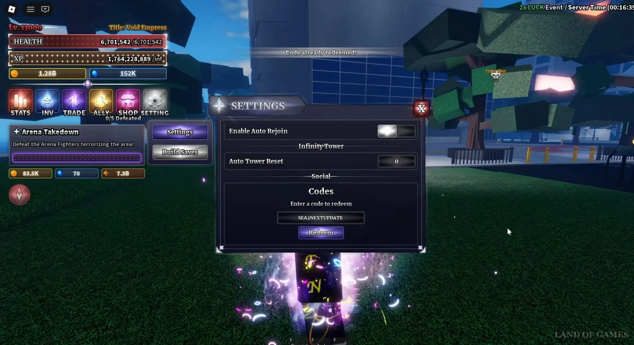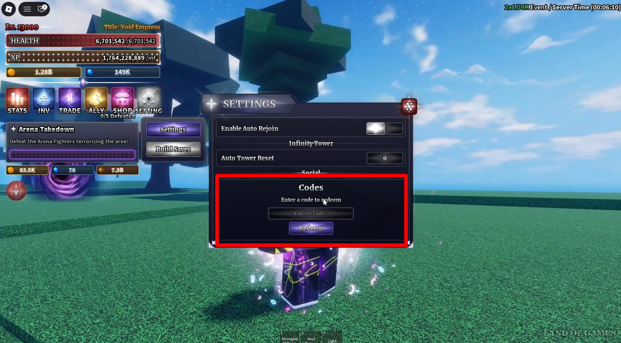 - MOREGOODFREECODE – позволяет получить 30x Power Shard, 40x Passive Shard, 5x Secret Chest (не подлежит торговле), 100x Clan Reroll (не подлежит торговле), 3x Aura Crate (не подлежит торговле), and 2x Cosmetic Crate (не подлежит торговле); требуется достичь уровня 10 000.