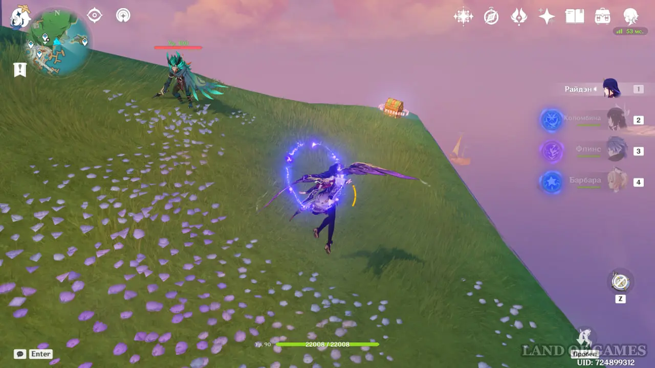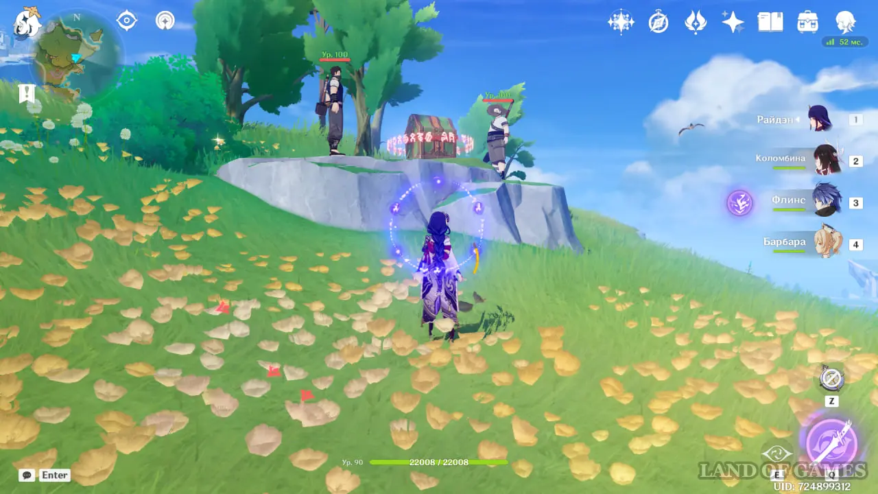 От того же телепорта у Сидрового озера направляйтесь на северо-запад. Одолейте пару хиличурлов и лавачурла с громовым шлемом.