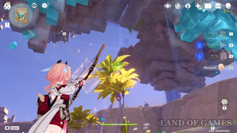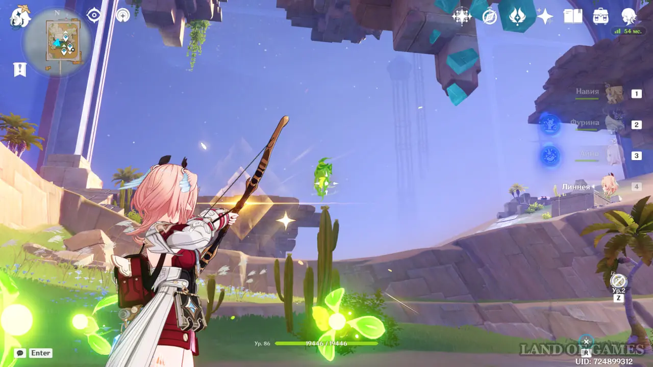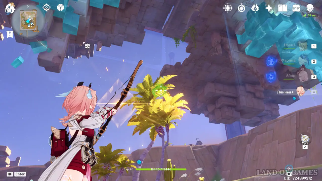 От предыдущего сундука спуститесь к оазису. Возьмите дендрогранумы и, используя лучника, попадите по трем мишеням.