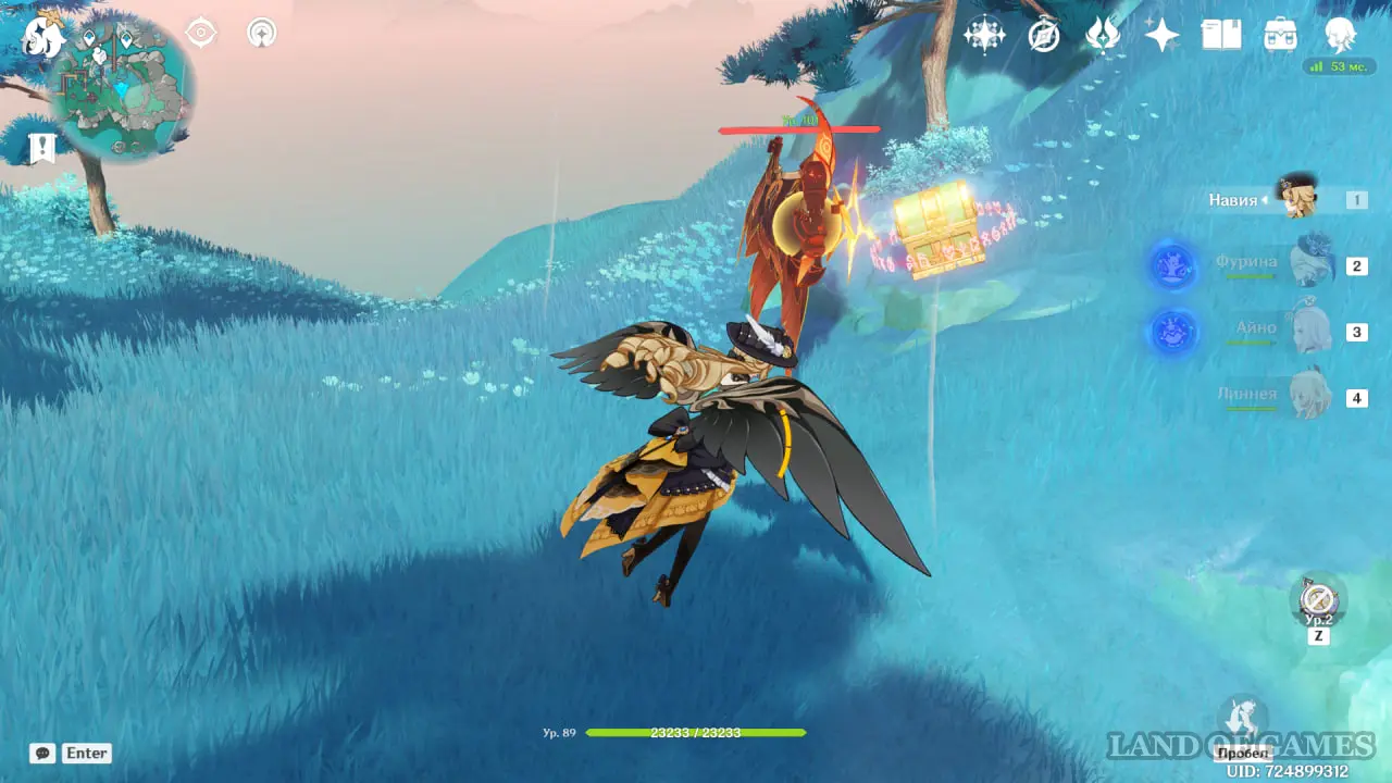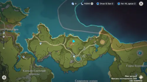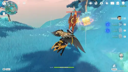 От Руин санатория летите на юг, к обрыву. Победите Анемо хиличурла-изгоя.