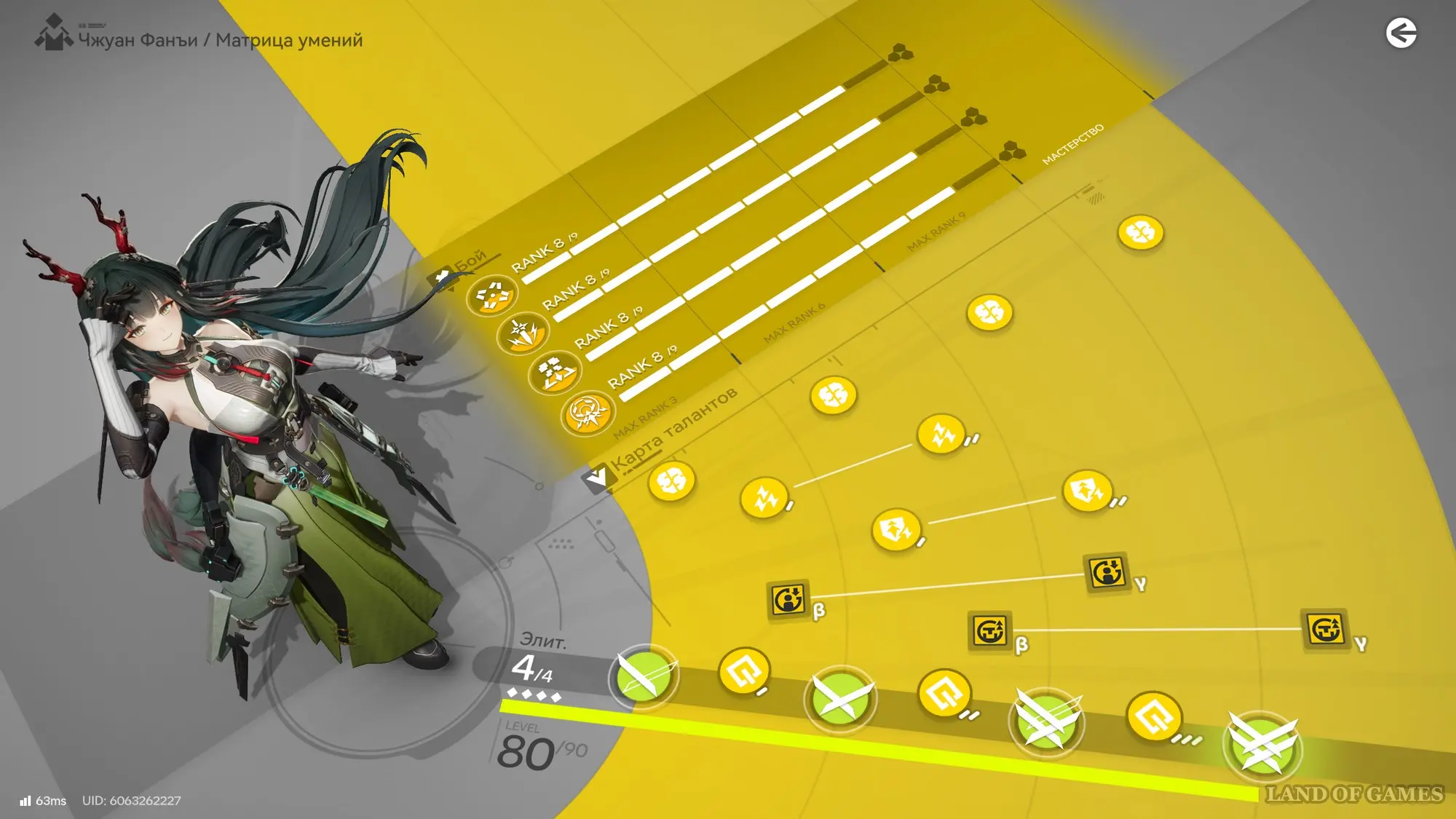 Для их открытия нужно копить Жетоны персонажа, выдаваемые при выпадении дубликатов героини, что, разумеется, носит случайный характер. Учитывая малый шанс на получение 6-звездочных оперативников, вам потребуется потратить немало времени и денег на разблокировку всего потенциала. Впрочем, даже без них Чжуан Фанъи без проблем играет роль основного дамагера.