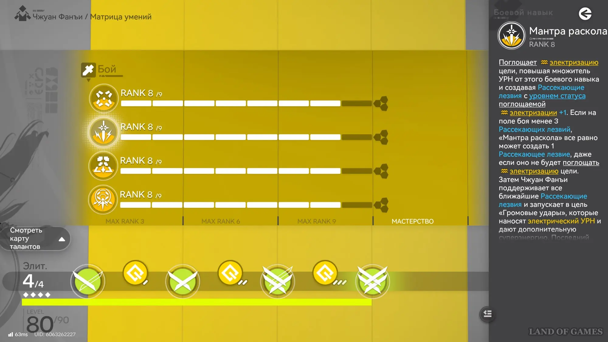 - Далее используйте усиленные базовые атаки, а потом примените боевой навык, который поглотит все уровни электризации уже в самом начале. По этой причине нужно сразу же после этого активировать комбонавык Фанъи, чтобы опять наложить электризацию и тогда последний удар ее боевого навыка нанесет максимальный урон.