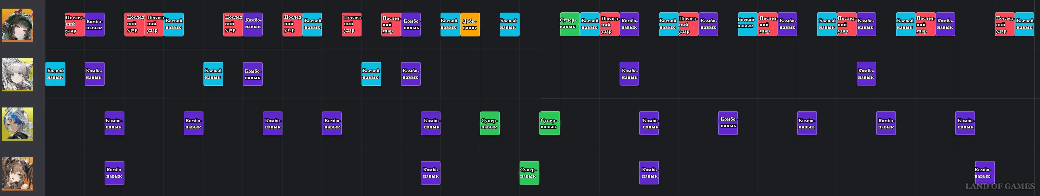 Хоть мы и указали, что не будем показывать ротации с конкретными персонажами, однако в данном случае избежать этого невозможно. Итак, при наличии Арклайт в отряде ротация будет выглядеть примерно так: