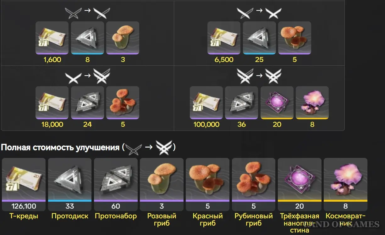 | Броня | Перчатки | Амуниция 1 | Амуниция 2 |