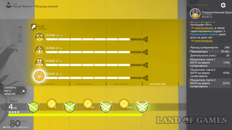 Примечание: Боевой навык также приводит к активации таланта, усиливающего электрический урон героини на 18% + по 2% за каждое попадание «Громового удара» по цели. Правда, бонус действует всего 5 секунд.